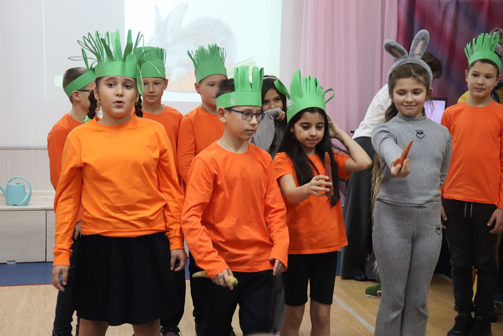 Итогом большой проделанной работы ребят с учителями и родителями стали интересные презентации. На общешкольном празднике каждый класс рассказал историю происхождения своего овоща, который был вытянут при жеребьевке, как и где он растет, в каких блюдах (и в кухнях каких народов) используется. Сколько интересного мы узнали в этот день!
