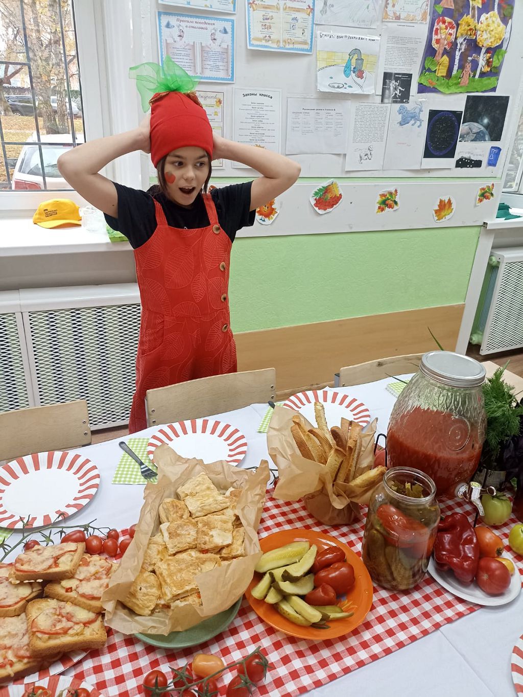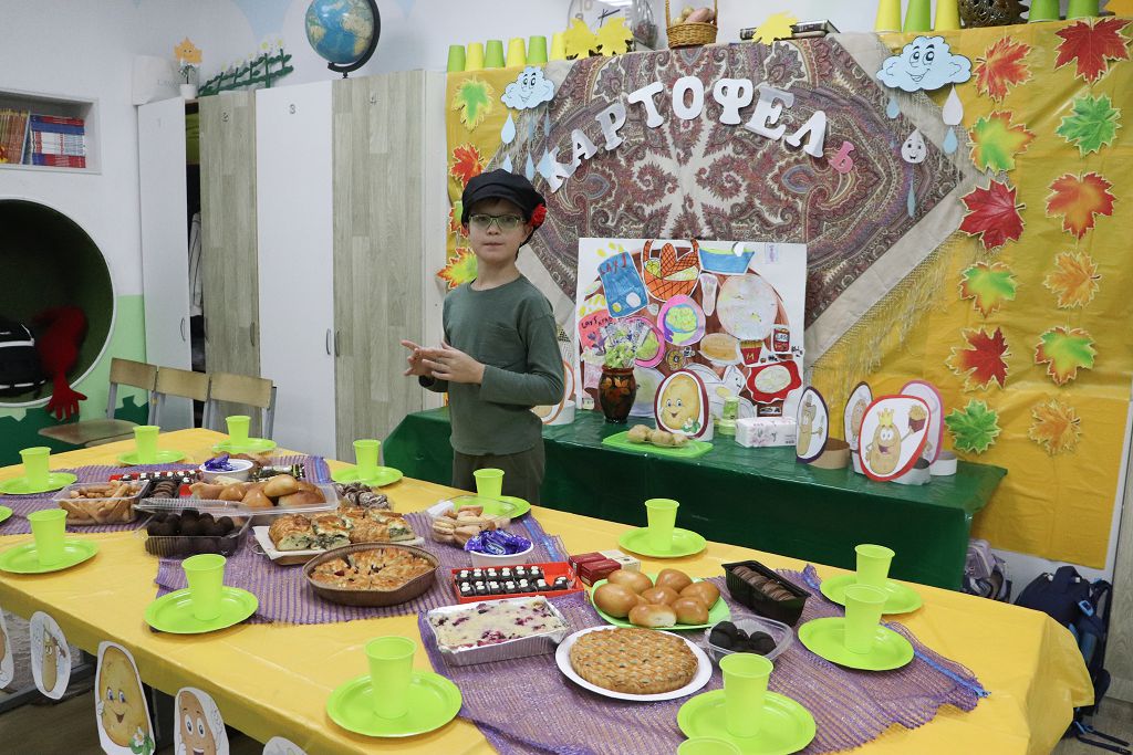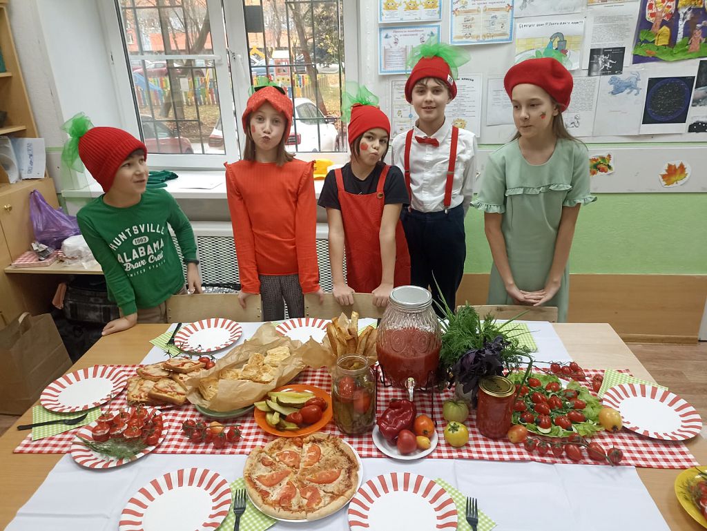 Была проведена жеребьевка. Каждый класс вытянул свой овощ или фрукт и «закипела» работа: продумывались оформление каждого класса, костюмы, музыкальное сопровождение, разучивались песни и сценки, изучались блюда русской кухни и других народов России с овощами и ягодами. Изучалась технология приготовления пирогов с «осенними» начинками: морковного, клюквенного и яблочного печенья, кабачковых и картофельных оладушек, вареников с картошкой, капустой и клюквой, ягодных напитков (морс, компот, кисель), яблочной шарлотки и штруделя, клюквенного мармелада и даже морковного торта! Ребята не только в теории узнали рецепты этих блюд, но еще и приготовили дома с родителями и принесли в школу для дегустации и чаепития.