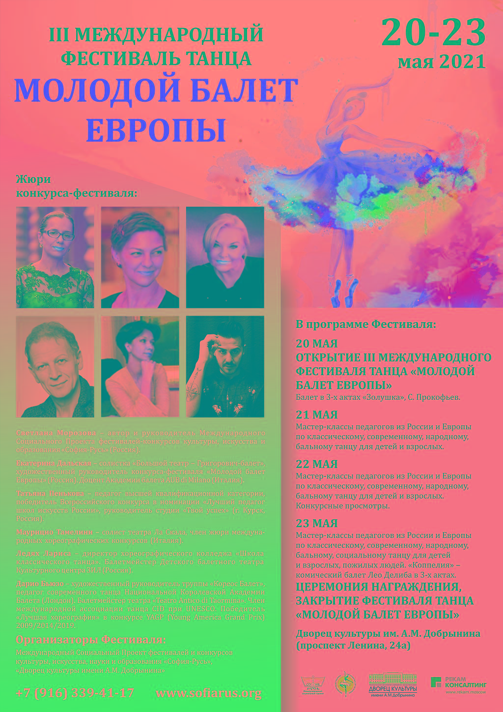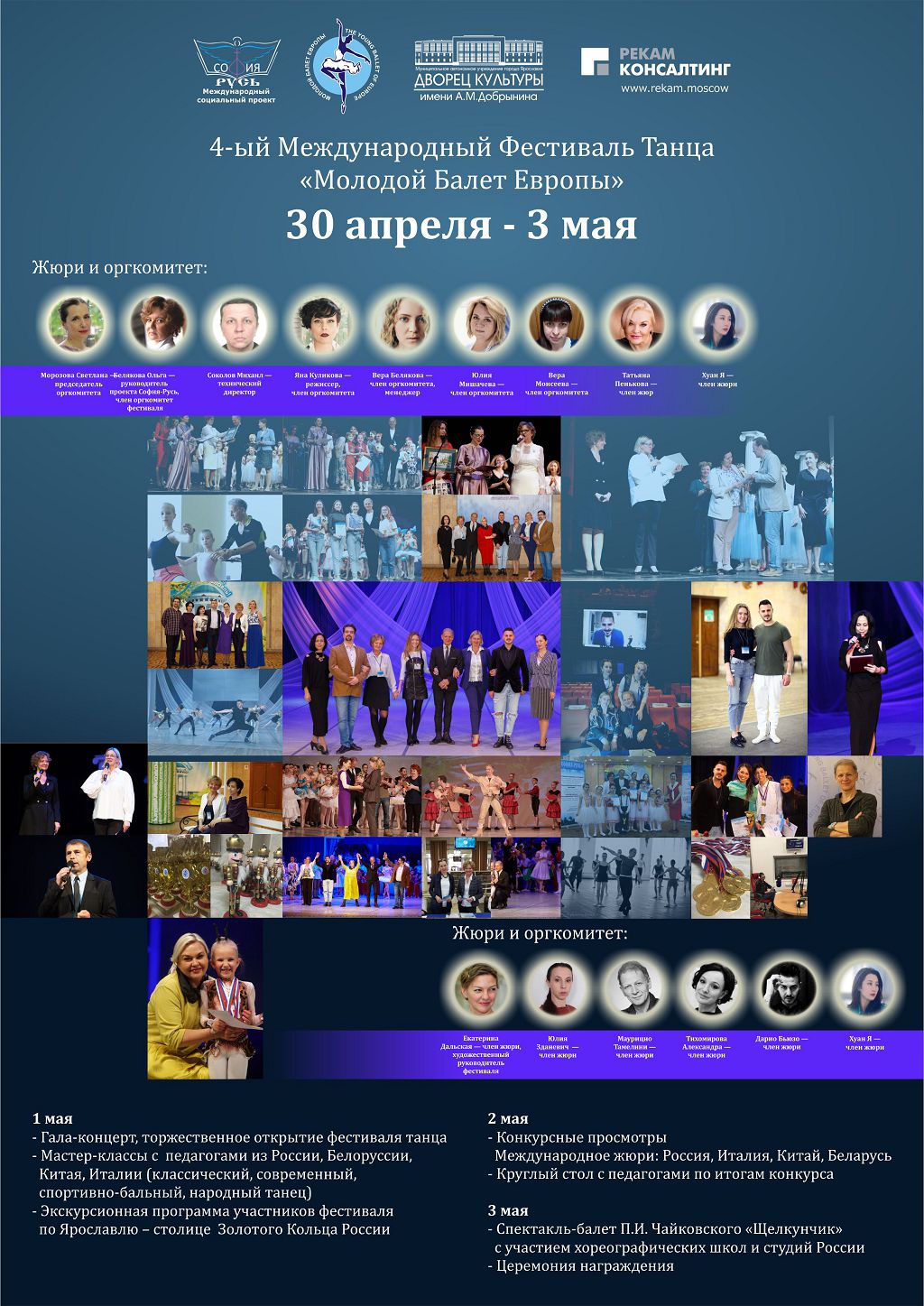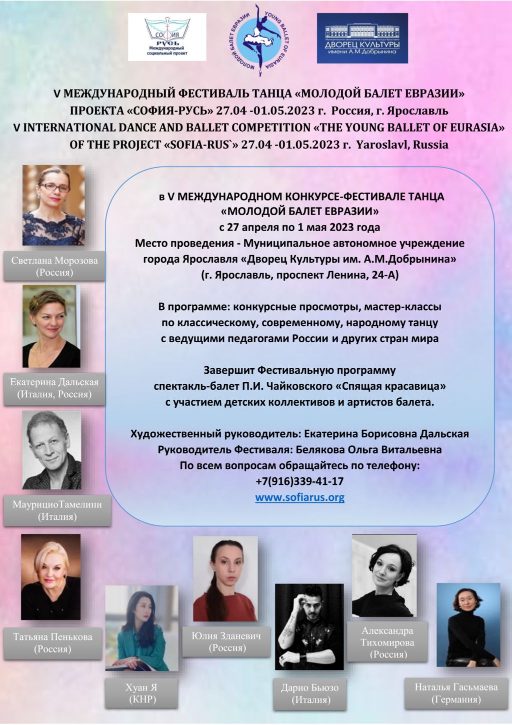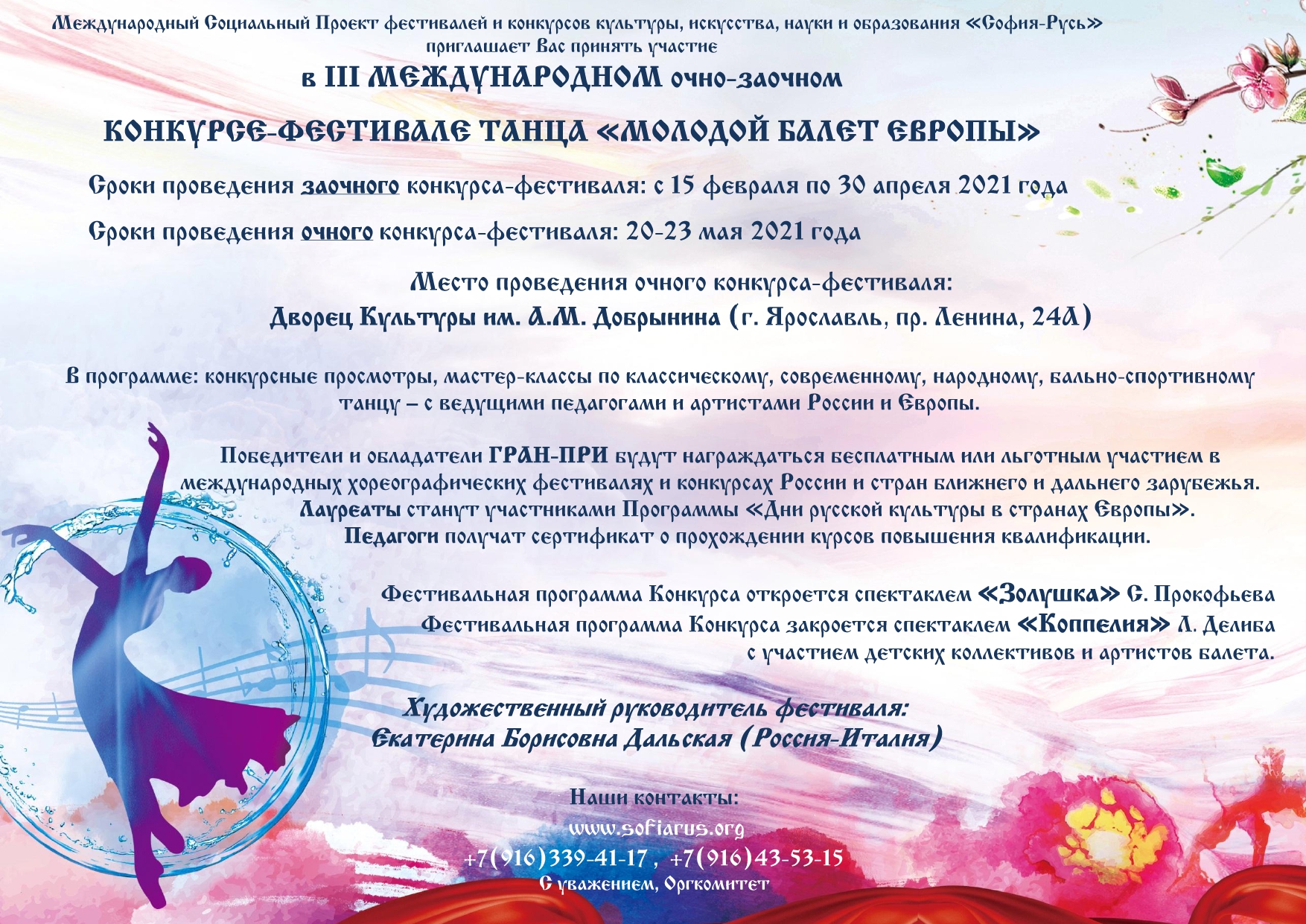 С 11 по 13 мая 2018 года в г. Ярославле во Дворце Культуры им. Добрынина состоялось мероприятие, которое стало настоящим праздником для любителей балета, - Международный Фестиваль Танца «Молодой Балет Европы». Фестиваль танца - часть масштабного Международного Проекта фестивалей и конкурсов культуры, искусства, науки и образования «София-Русь», который проводит мероприятия различной направленности и социальной значимости.