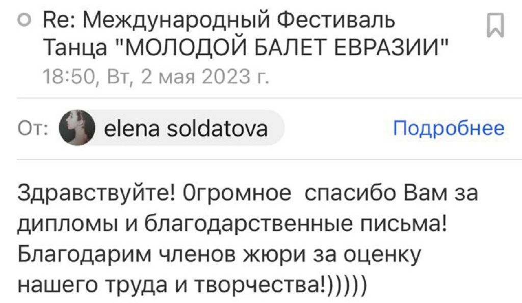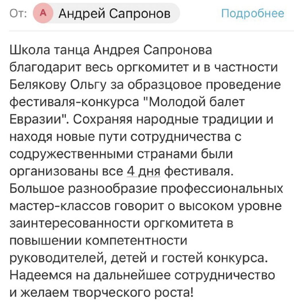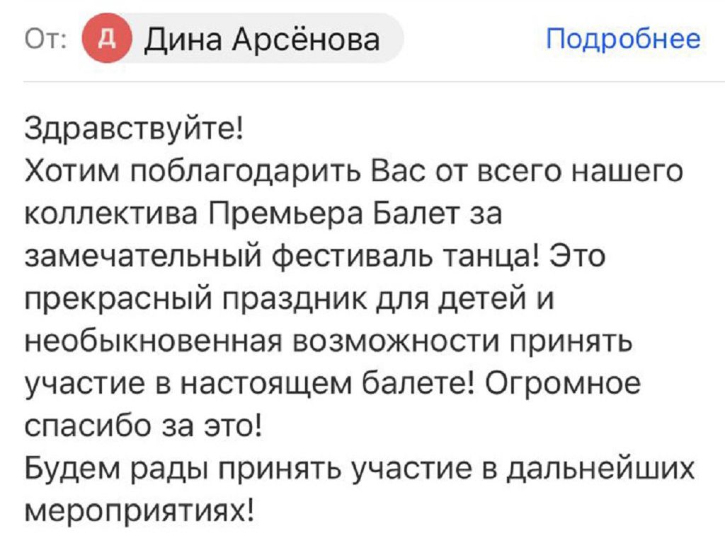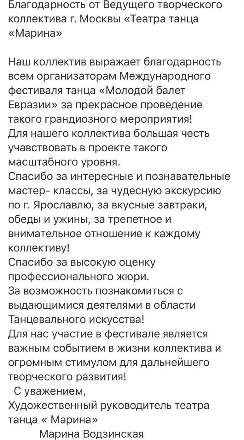 От лица коллектива студии классического танца "Пахита" благодарю весь состав оргкомитета