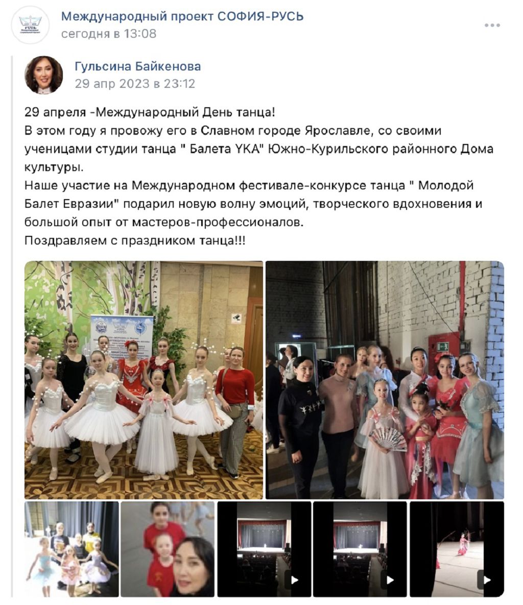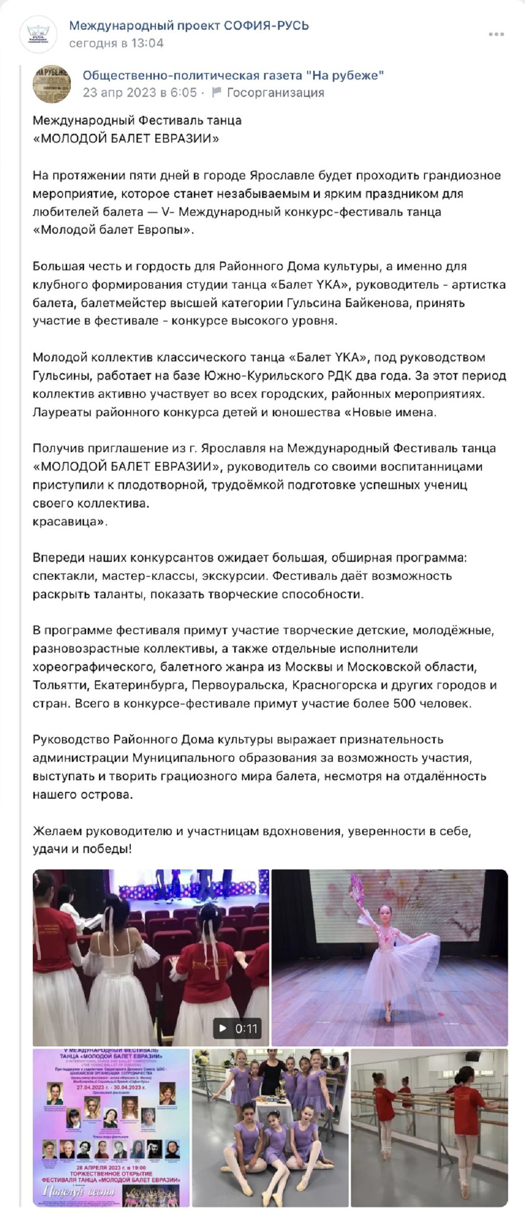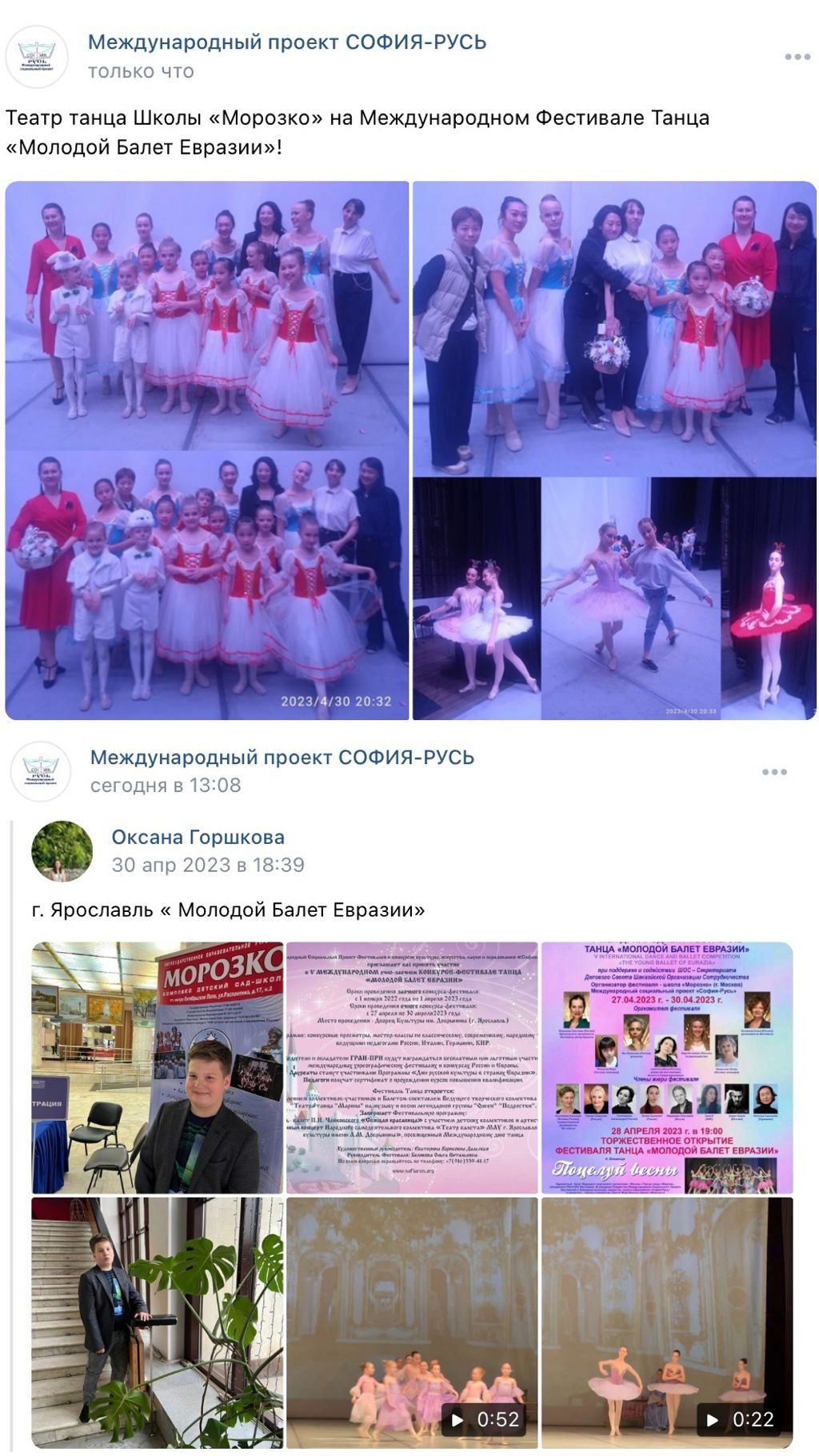 Значение подобных совместных культурных проектов – в сближении творческой молодежи из разных стран мира, в налаживании новых контактов и рождении новых творческих планов и замыслов, которые объединяют творческих людей вне зависимости от места их проживания. Наш фестиваль танца «Молодой балет Европы» объединил тех, кто любит балет – педагогов, родителей, детей и талантливую молодежь, которая серьезно , на профессиональном уровне занимается хореографией…