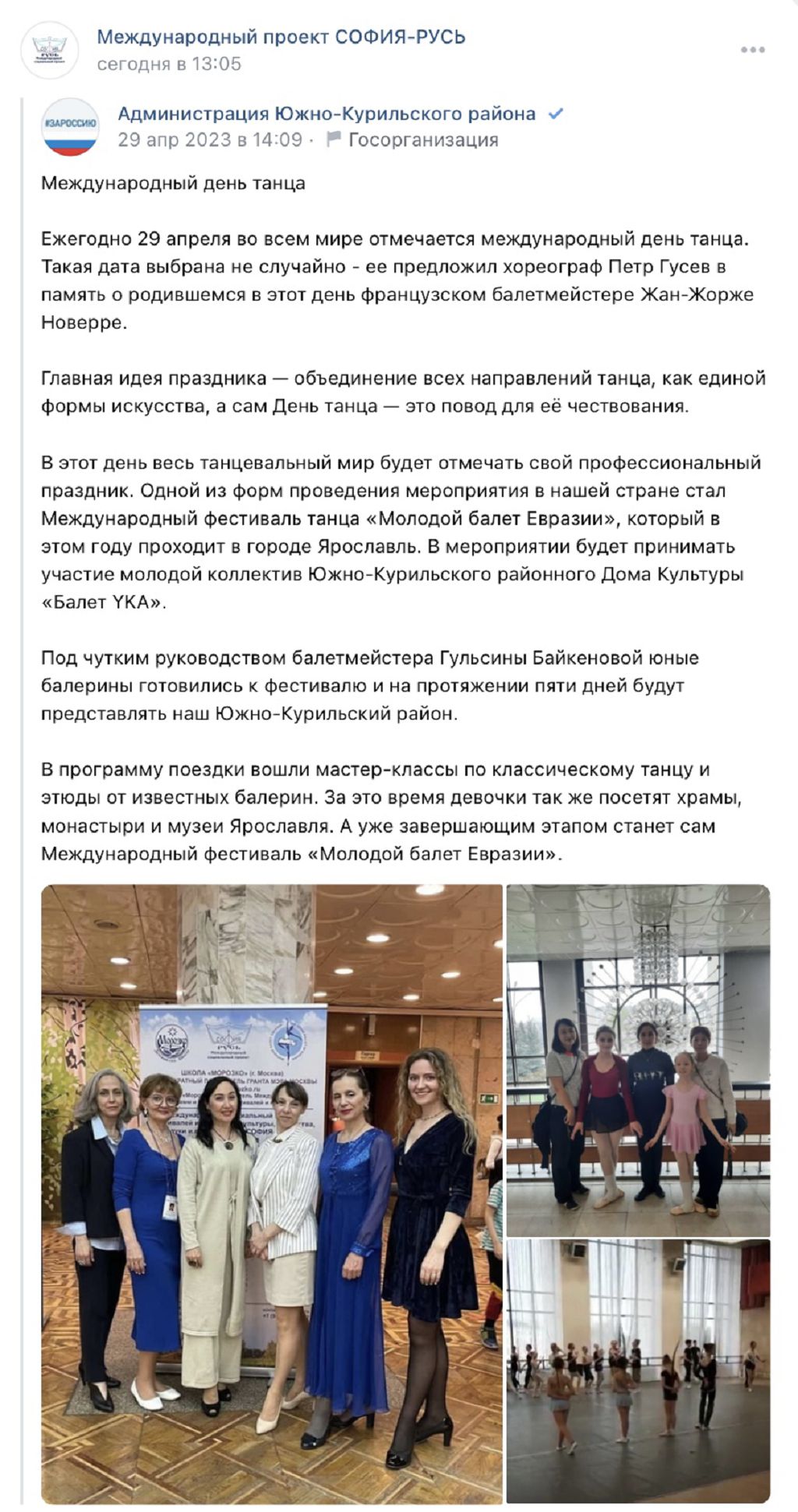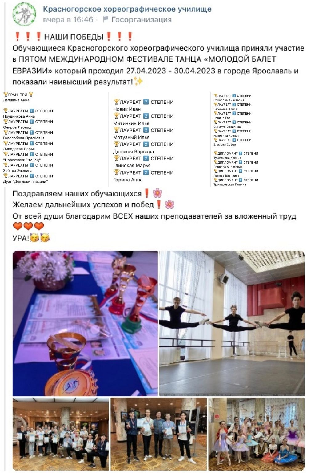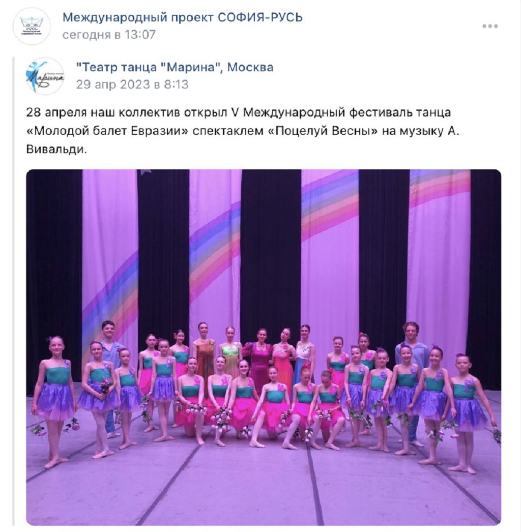в балете "Дон-Кихот", надеемся на дальнейшее сотрудничество с коллективом "Молодой балет Москвы" и с другими студиями в танцевальных постановках. Наши участницы были достойно отмечены жюри,