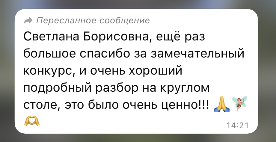 Уважаемая Светлана Борисовна, Ольга Витальевна, Яна Александровна, родители и дети нашего коллектива благодарят вас не только за возможность приехать на конкурс в г. Ярославль, но и за саму идею объединить в одном мероприятии столько хореографических направлений и форм. В этом году, помимо конкурсных просмотров, коллективы могли, как участники и зрители, соприкоснуться с большой творческой формой - балетными спектаклями. В дни фестиваля было представлено 4 спектакля: "Жил был король", "Фея кукол", "По страницам любимых сказок" и "Сон Маши". Наши дети приняли активное участие в двух из них, остальные с удовольствием посмотрели из зрительного зала. Очень ценной была для наших детей возможность поучаствовать в мастер-классах не только русских, но и иностранных педагогов. Наши дети с удовольствием занимались на мастер-классе Го Чаои из КНР, Исмаила Идальго из республики Куба, Юлии Зданевич (Хореографический колледж Г. Ледях) и Натальи Лавровской (экспериментальная лаборатория Лавровских). Дети были приятно удивлены подарками, которые спонсоры (Erih Krause) передал победителям на церемонии награждения. И особую благодарность хочется передать организаторам и спонсорам за возможность увидеть конкурсные выступления артистов народно-патриотического блока. Ребятам из Курской, Белгородской областей была предоставлена спонсорская поддержка, что бы они имели возможность выехать из своих регионов и не просто показать своë творчество, но и поддержать своим выступлением саму идею объединения людей против войны, не взирая на временной отрезок, в котором эта беда случилась с нашей Родиной. Это было очень патриотично, доходчиво, эмоционально и трогательно!☀️☀️☀️