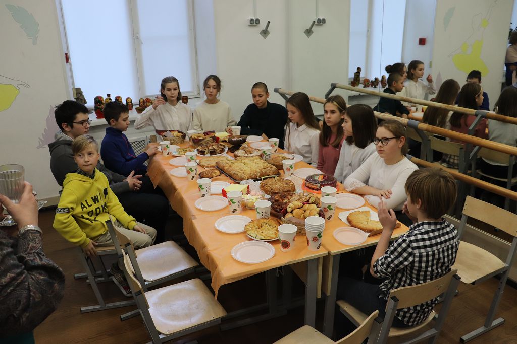 Ребята в каждом классе, вместе с учителями, которые их активно поддерживают и помогают, украсили красивые столы. И перед началом чаепития рассказали своим одноклассникам о тех кулинарных изделиях, которые они приготовили и принесли в свой класс. Благодаря такой дружной подготовке состоялся настоящий ФЕСТИВАЛЬ ПИРОГОВ!