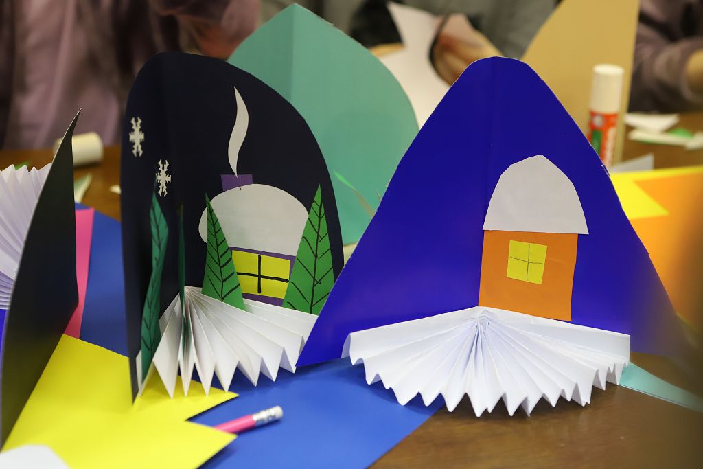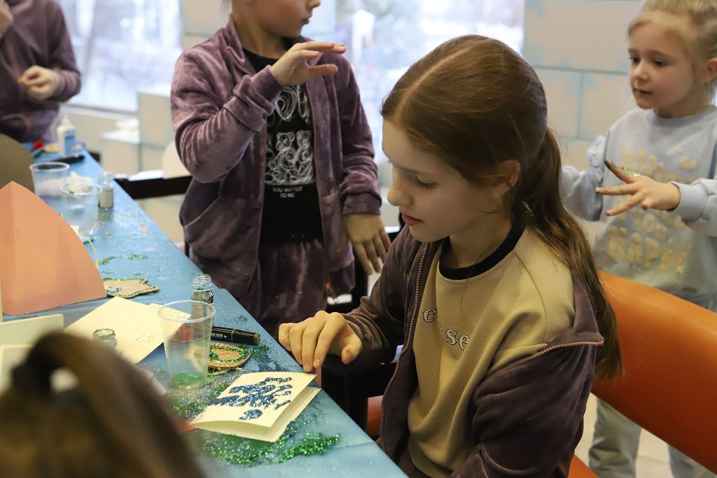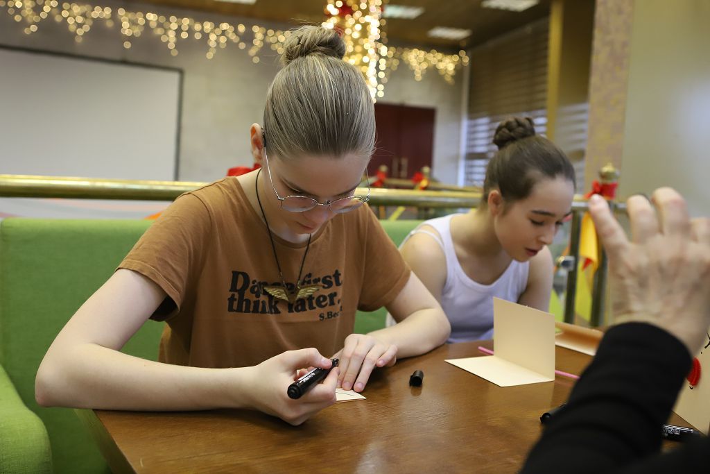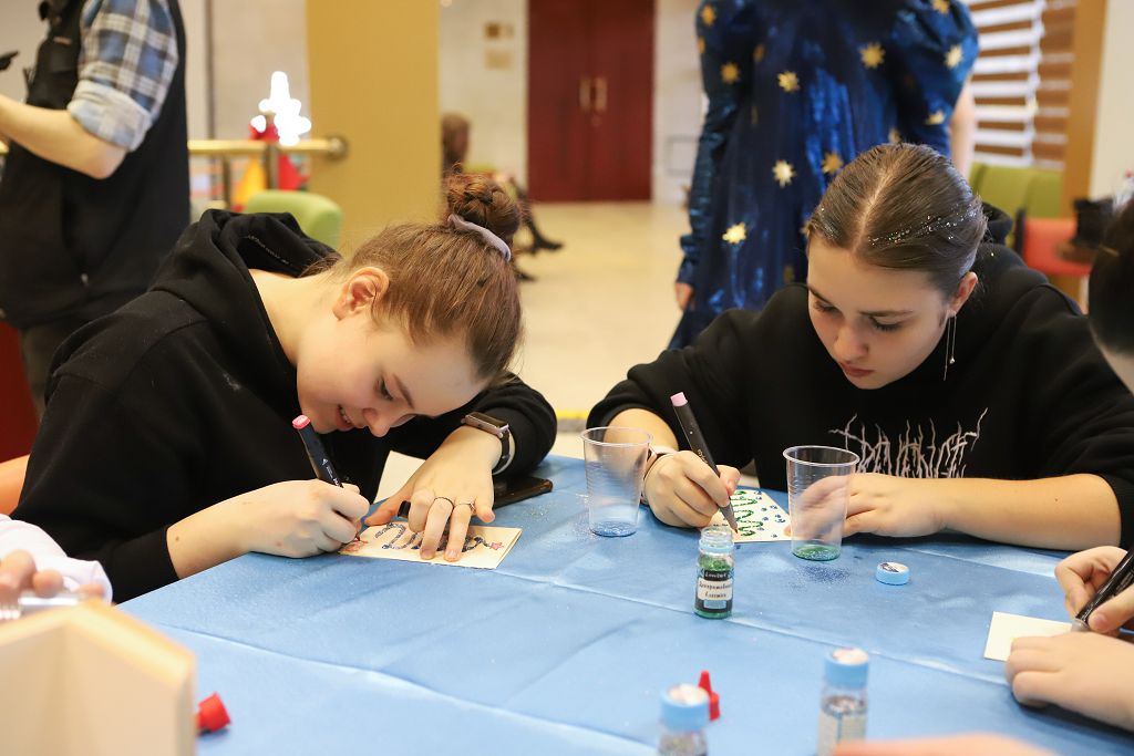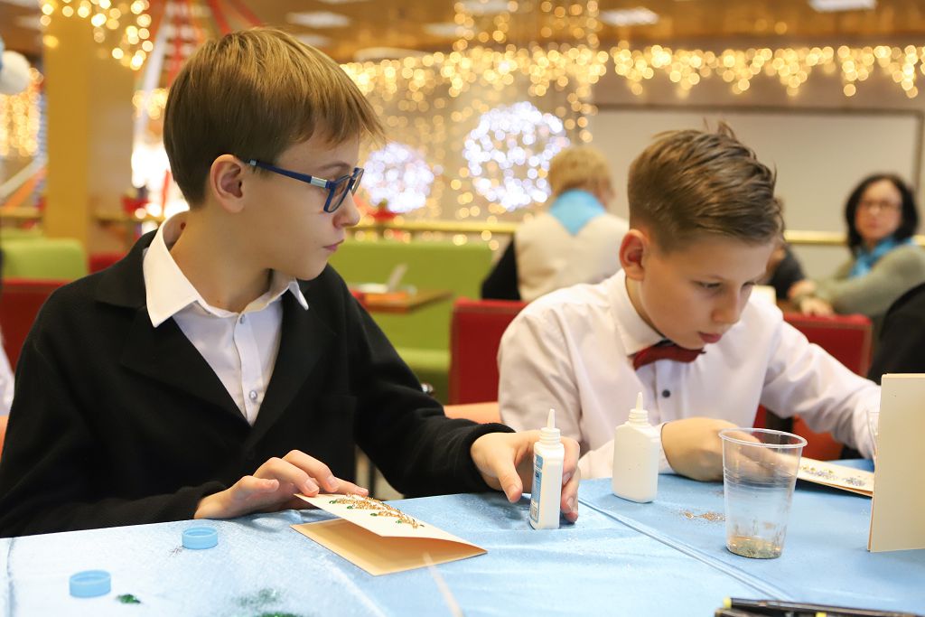 Благодаря подаркам фирмы «Эрик Краузе» радостно и ярко прошли мастер-классы, где также были использованы краски, пластилин, фломастеры, карандаши для изготовления новогодних открыток.