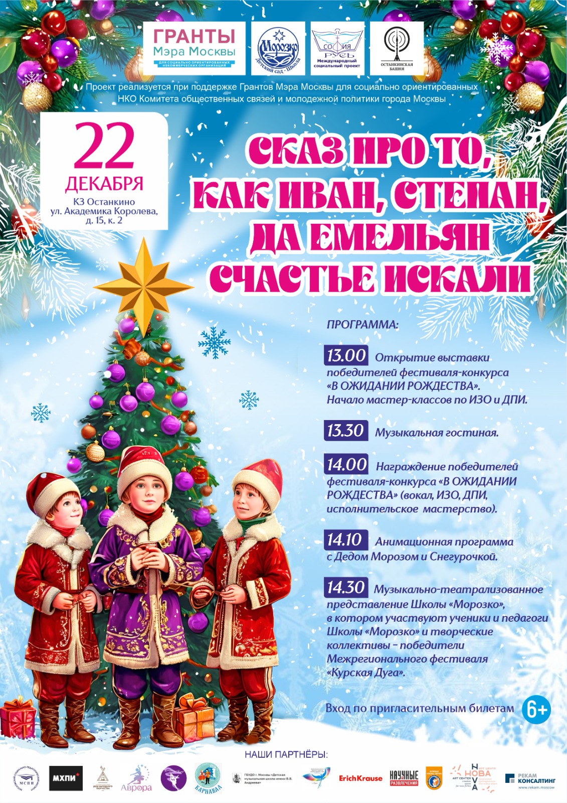 22 ДЕКАБРЯ 2024 ГОДА в Концертном Зале «Останкино» Школа «МОРОЗКО» - неоднократный