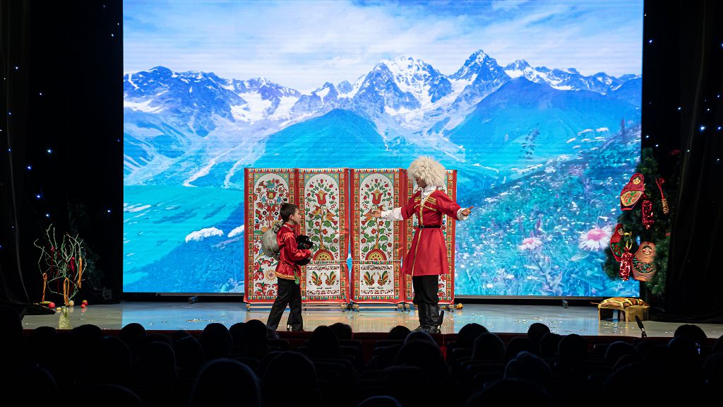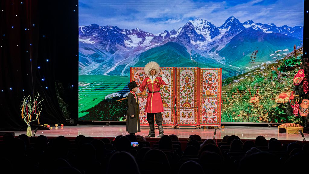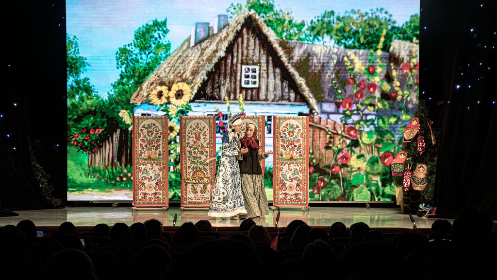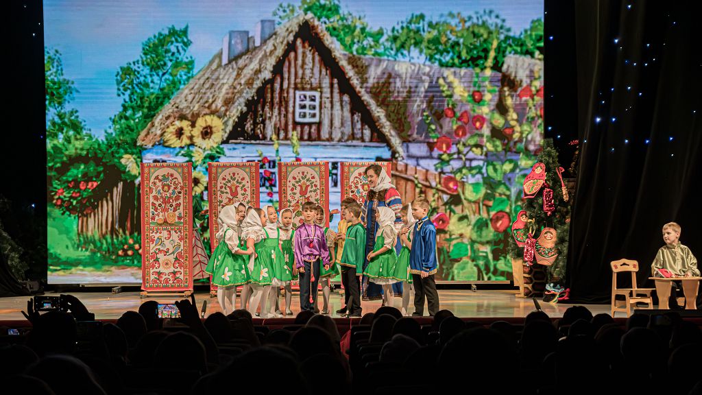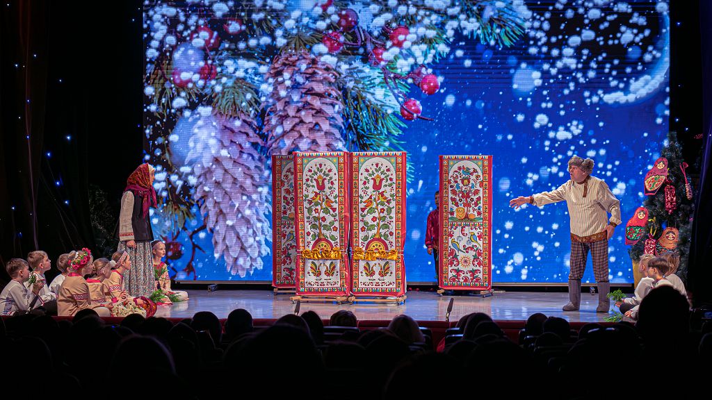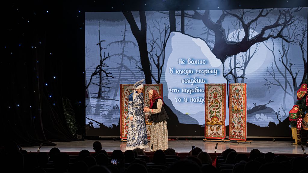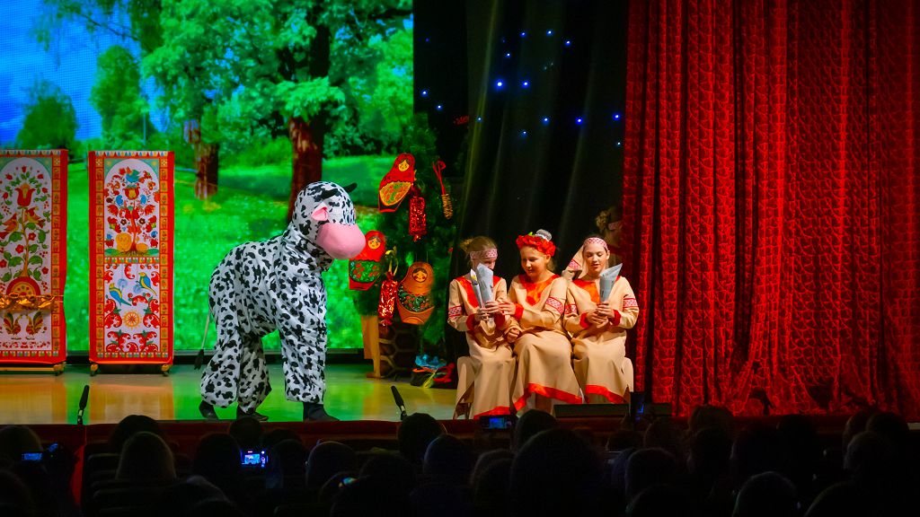 После музыкальной гостиной и награждения победителей все гости были приглашены в Концертный зал, где начался новогодний спектакль «Сказ про то, как Иван, Степан , да Емельян счастье искали». Режиссер- Куликова Я.А., хореограф-постановщик – Пенькова Т.С.
