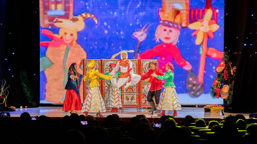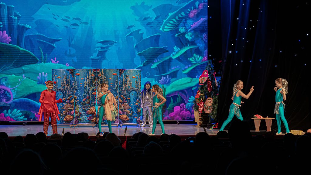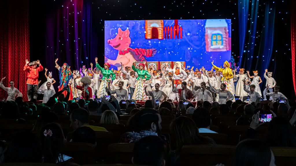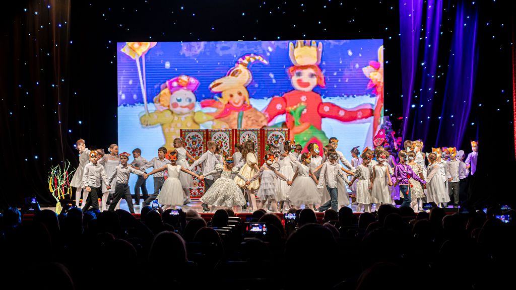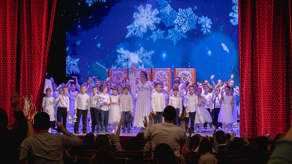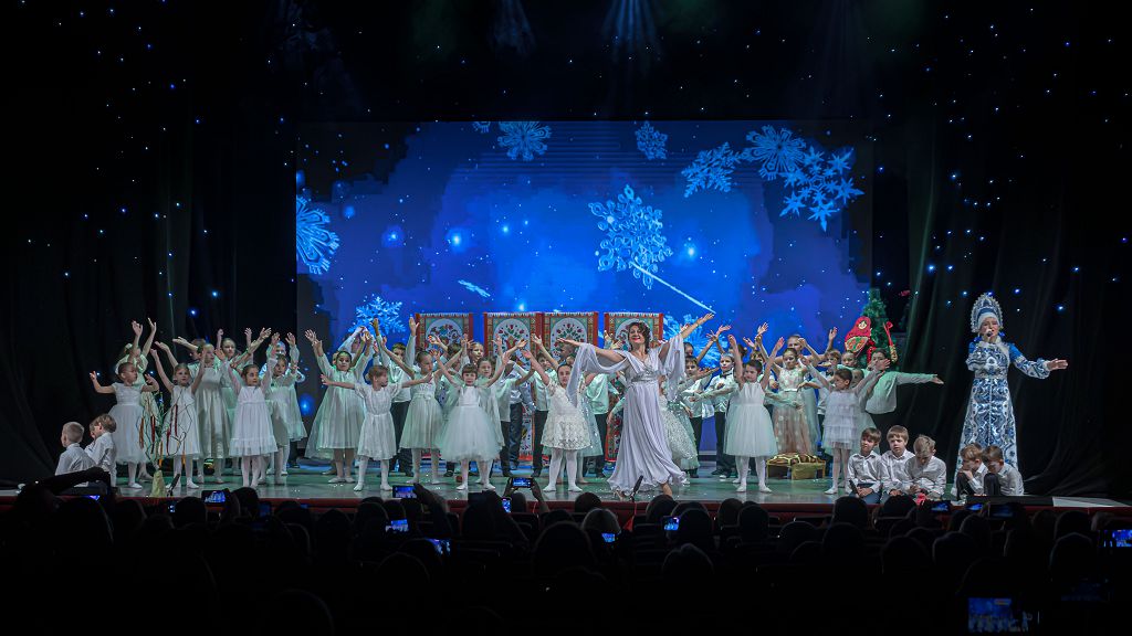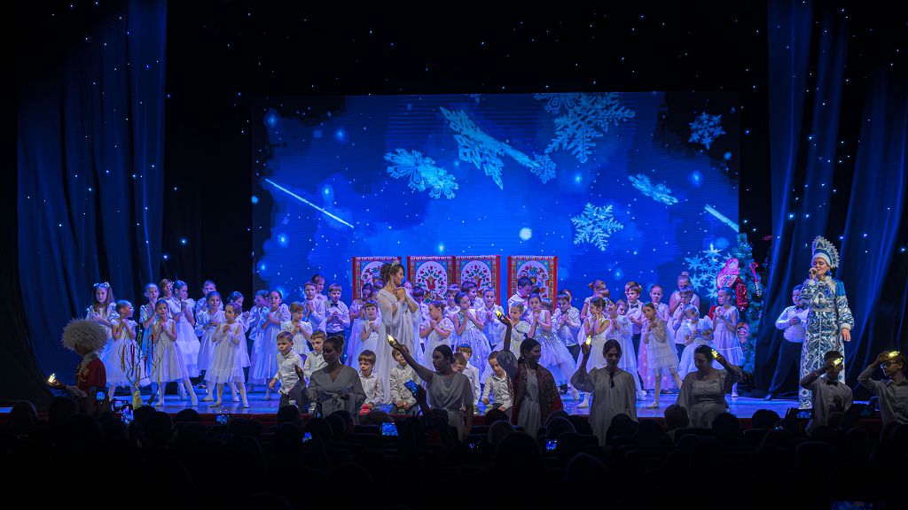 Всего в спектакле было занято 160 детей и взрослых артистов. Спектакль закончился трогательной, рождественской песней, которую вместе с артистами, которые вышли на сцену , пел весь зрительный зал, зажигая огоньки на своих смартфонах.