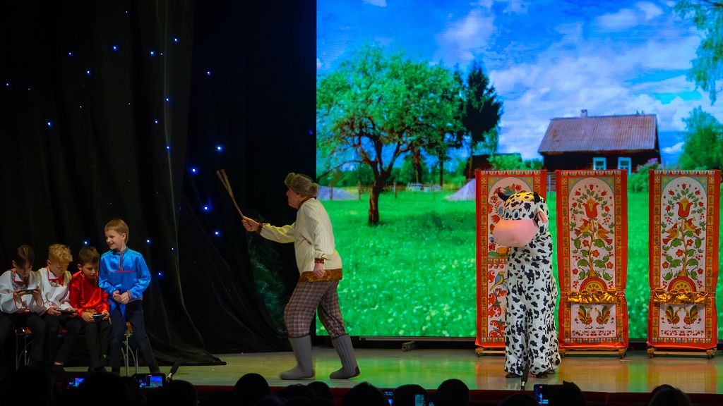 Отрывок Спектакля Школы МОРОЗКО «Сказ про то, как Иван, Степан, да Емельян счастье искали». Деревня. Можно посмотреть здесь.