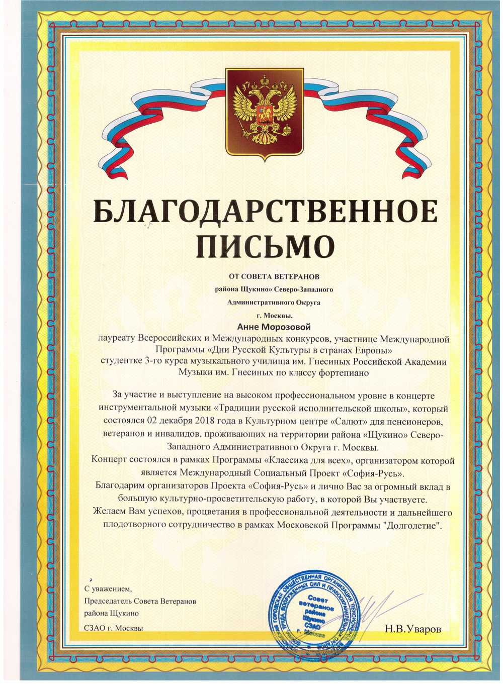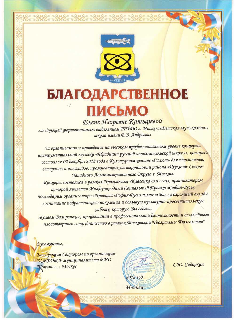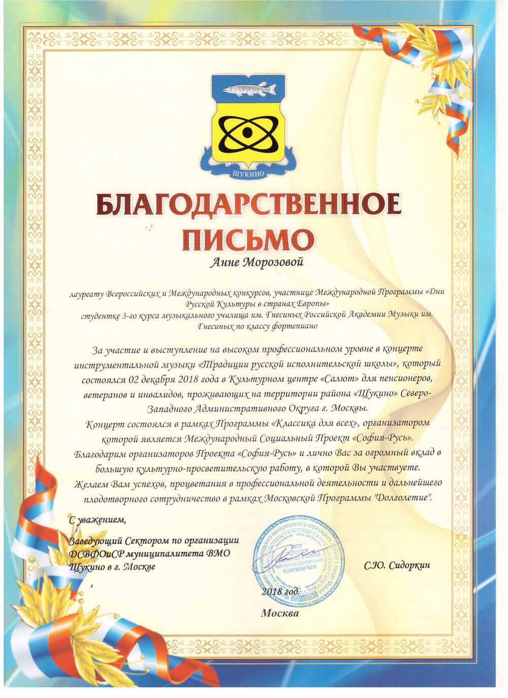 Организаторы Фестиваля культуры и Искусства «СОФИЯ — РУСЬ. ДИАЛОГ КУЛЬТУР» получили благодарственные письма от МОСКОВСКОЙ ГОРОДСКОЙ ДУМЫ.