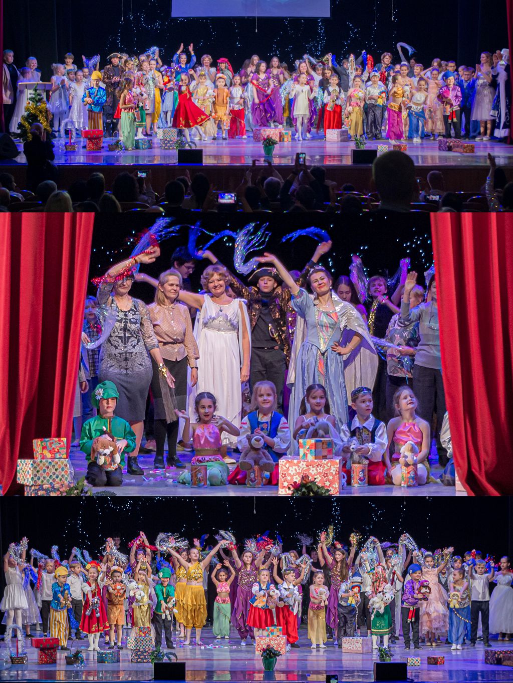 В спектакле участвовало более 100 человек артистов — детей и педагогов. Получилось действительно очень яркое, зрелищное, костюмированное представление, которое надолго останется в памяти наших маленьких артистов и зрителей, среди которых были не только родители учеников нашей школы, но и жители Москвы самой разной возрастной категории — дети, молодежь, люди пожилого возраста. Спасибо зрителям, которые пришли на наш спектакль, практически полностью заполнив зрительный зал, тепло, эмоционально поддерживая артистов!