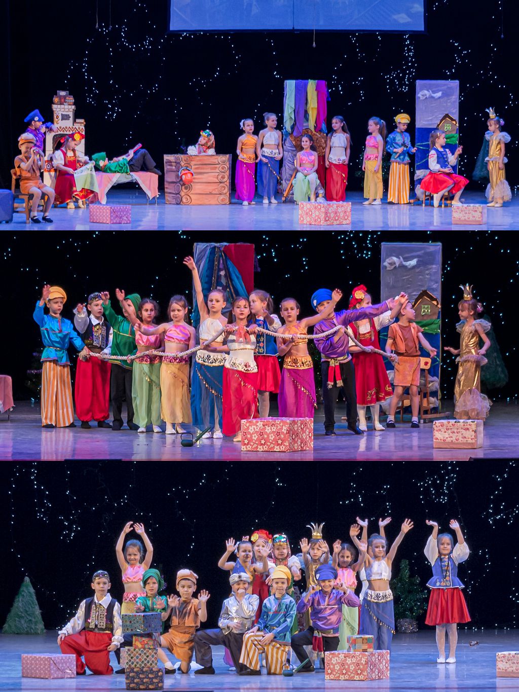 И именно этому учат ребят мудрые и добрые сказки, которые каждый год мы пишем под Рождество для наших учеников. Они всегда новые, мы никогда не повторяемся. И ребята вовлечены в очень интересный, увлекательный, порой достаточно хлопотный, трудный, утомительный, но очень интересный и важный процесс создания своих собственных сказок, где есть все – чудеса, волшебные превращения и перевоплощения. А какие перевоплощения возможны без костюмов? Поэтому в нашей школе придается огромное значение сценическим костюмам. Наши зрители всегда поражаются прекрасным, разнообразным, ярким костюмам, в которых выступают дети.