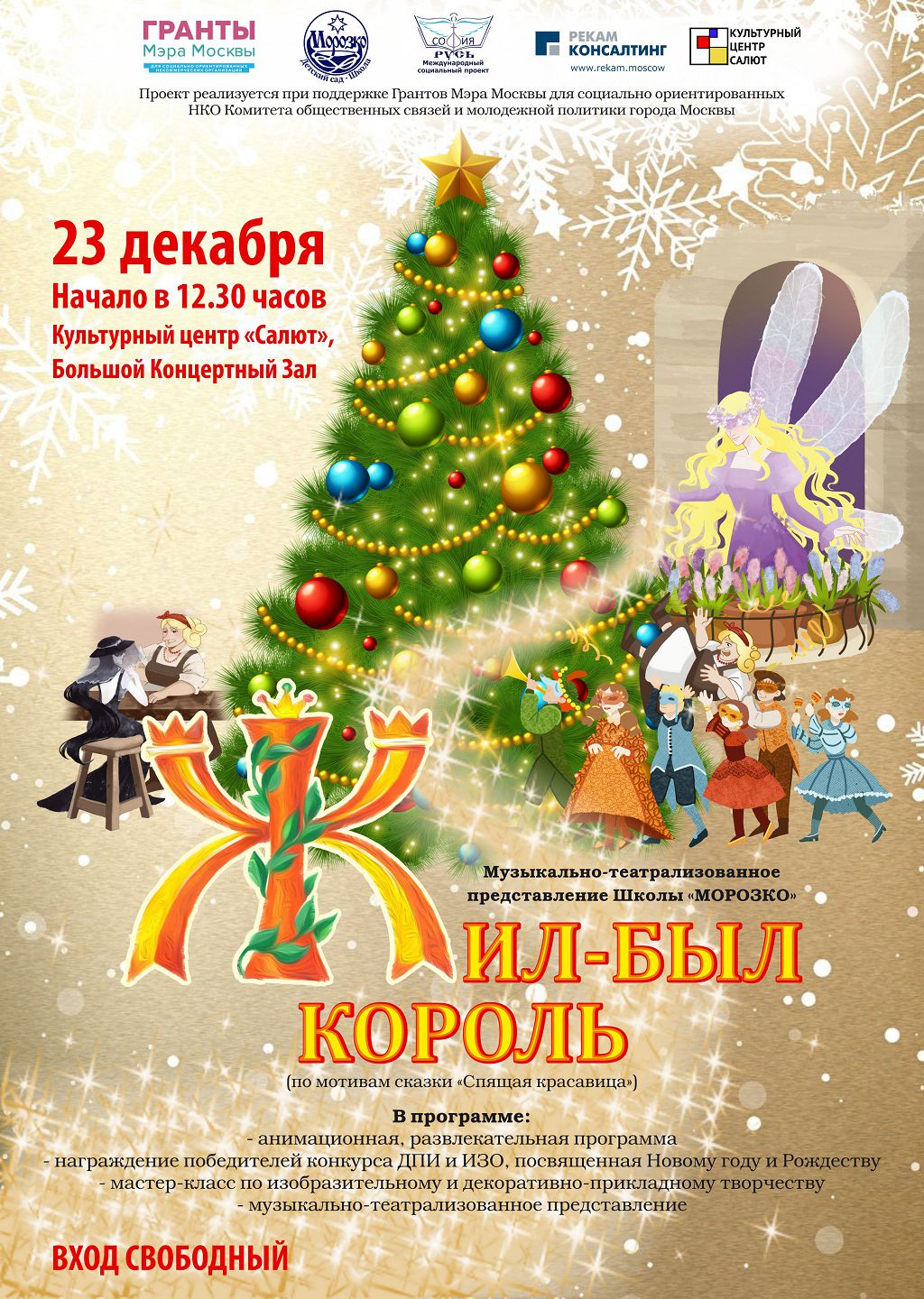 - Ежегодное новогоднее музыкально-театрализованное представление - Спектакль «Жил-был Король» (по мотивам сказки «Спящая красавица»), Мастер-классы по изобразительному и декоративно-прикладному искусству