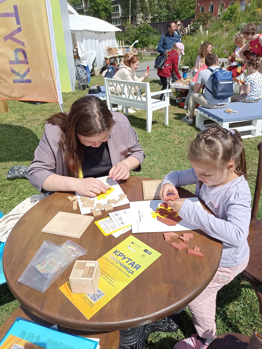 Детские голоса, заинтересованные лица взрослых, музыка и театрализованные представления, мастер-классы… Удивительная радостная творческая атмосфера! Крутая песочница – это фестивальное пространство, где педагоги, родители и дети смогли принять участие в образовательных и познавательных программах от самых крутых практиков дошкольного образования России. Воспитатели дошкольных групп школы «Морозко» знакомили всех желающих с играми смарт-тренинга «Мир головоломок», помогали решать головоломные задачки взрослым и детям. Их заинтересованность и профессионализм не остались незамеченными.