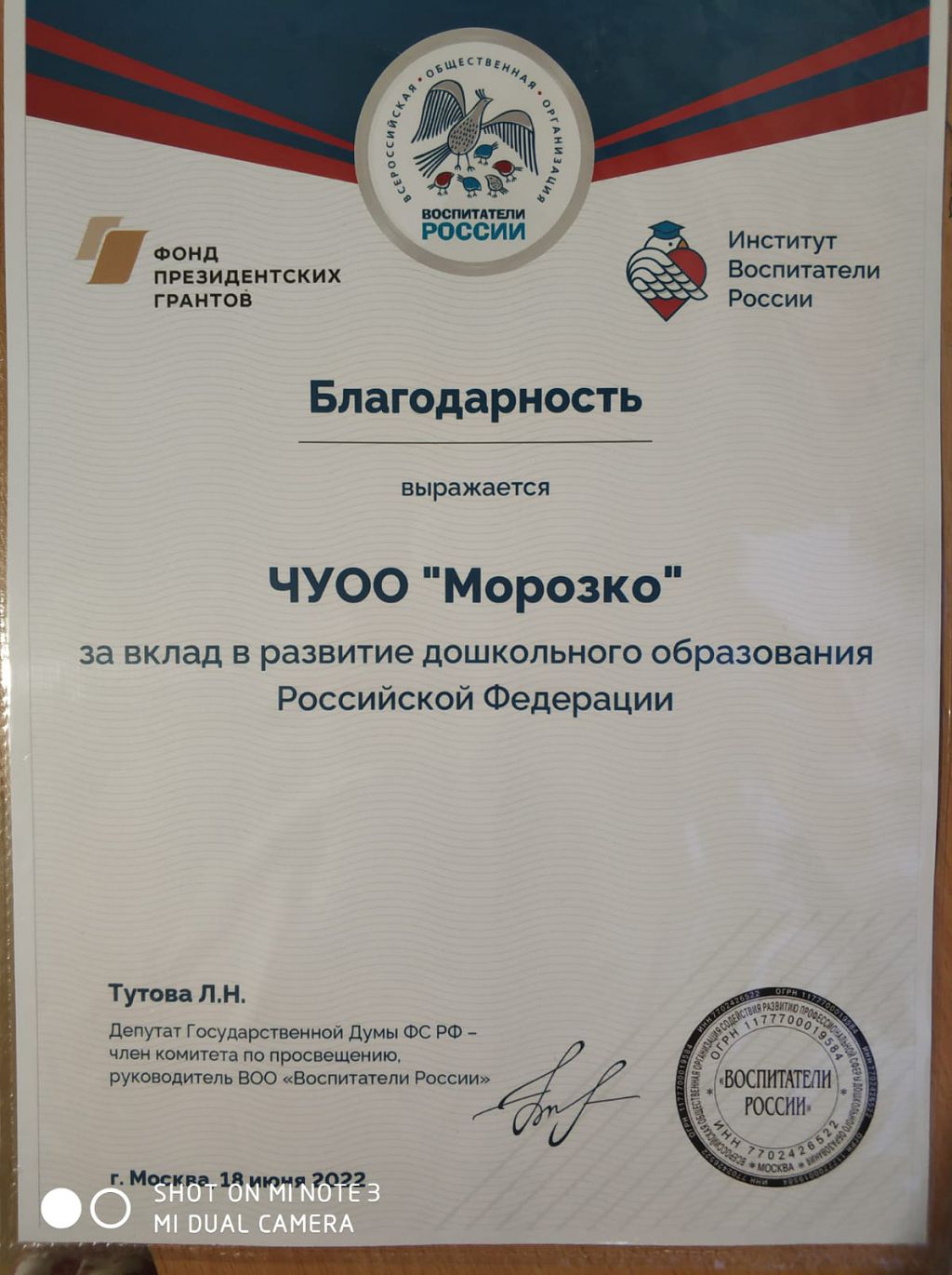 20-го ноября 2025 года на заседании Президиума Российской Академии Образования Школе "МОРОЗКО" присвоен статус