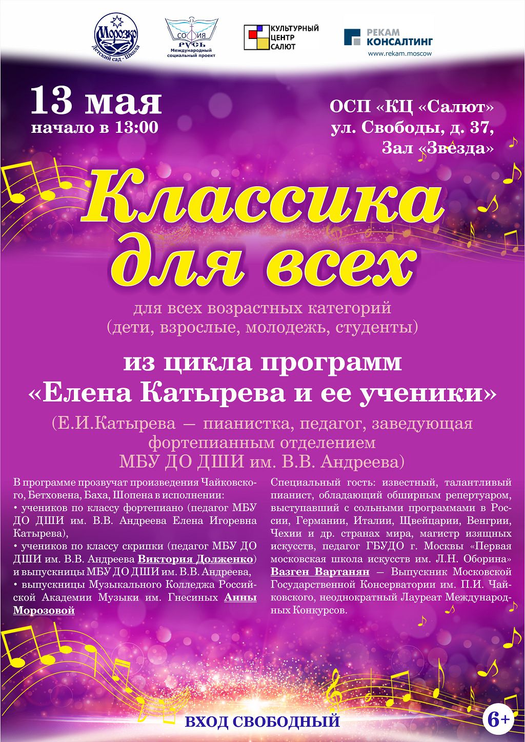 13 октября, 3 и 24 ноября, 8 декабря в ЦК "Салют" (Москва, ул.Свободы, д.37) состоятся концерты классической