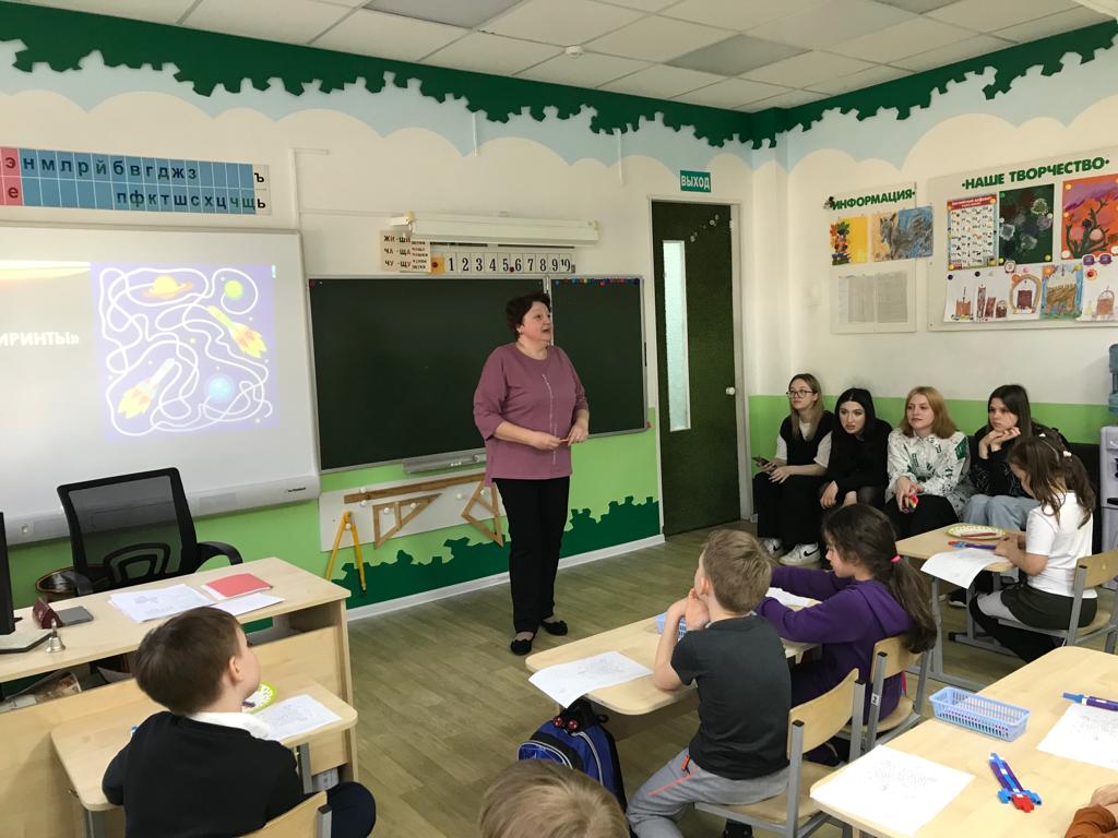 Первоклассники на уроке выполняли задания с лабиринтами, решали примеры и задачи, разгадывали загадки, находили отличия в картинках, выполняли кодировку.