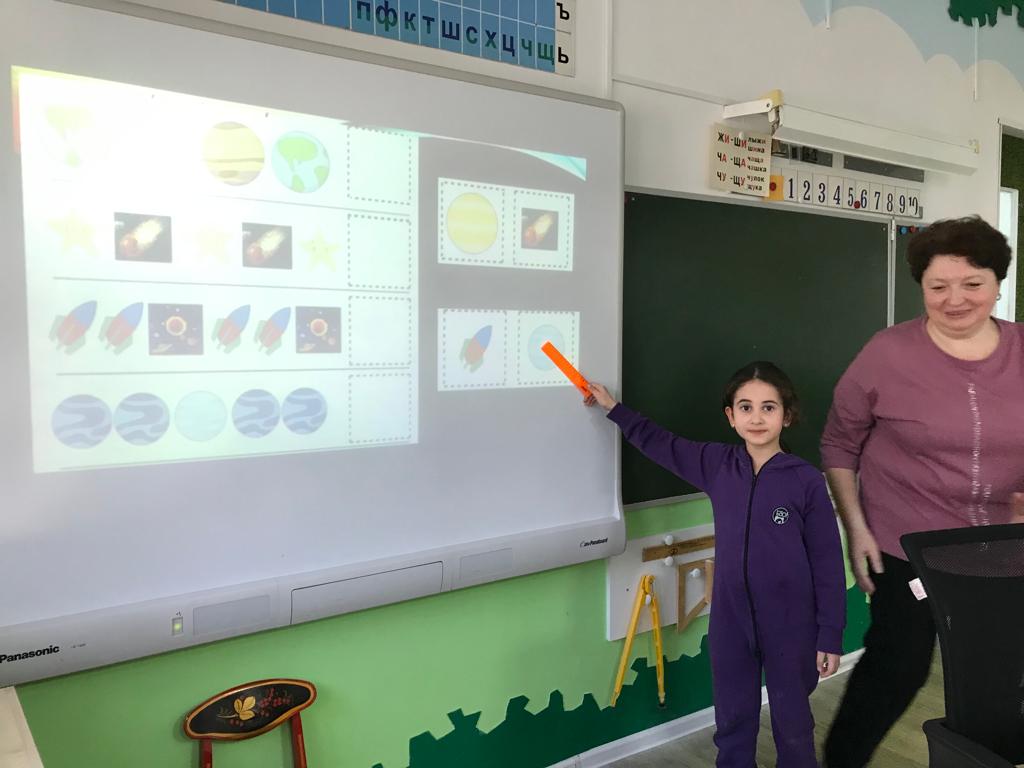которые очень интересно рассказали первоклассникам о своем космическом проекте.