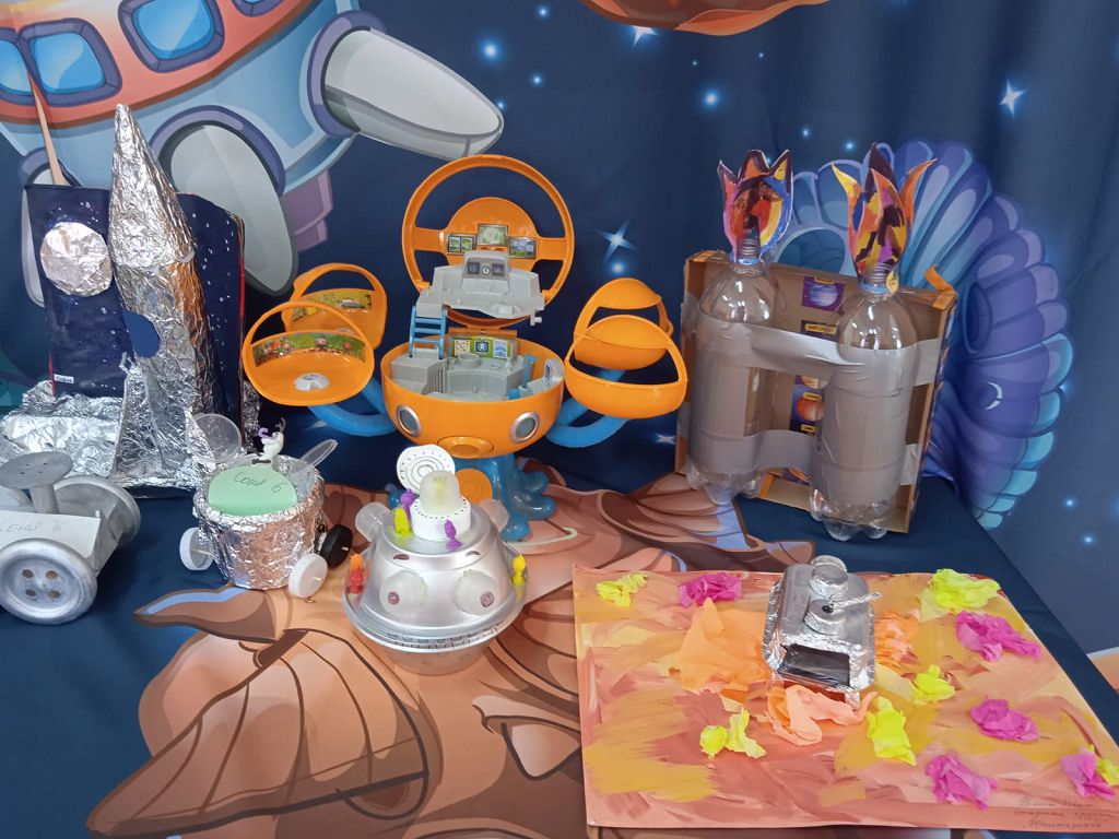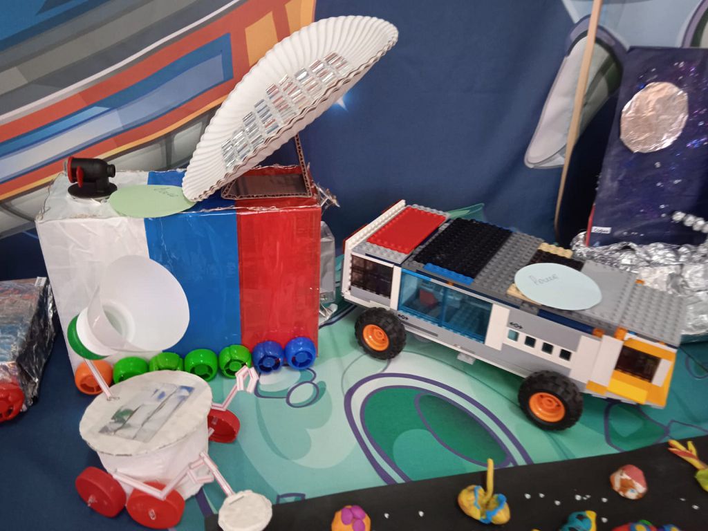 Космический Центр представлен различными поделками на космическую тематику - это планетоходы, космическая станция, космонавты,