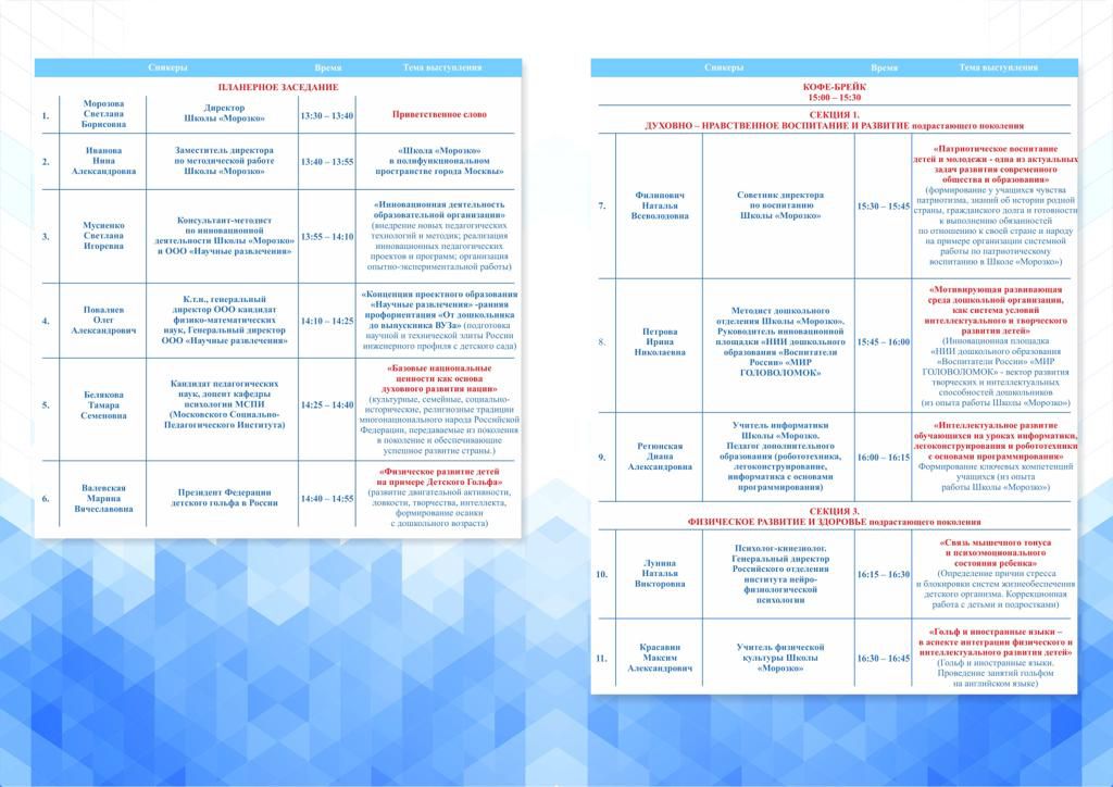 Открыла конференцию Морозова С.Б. – директор школы «Морозко», которая рассказала об уникальном опыте школы, которая на протяжении 25 лет показывает высокие результаты обучения, работая на основах преемственности, как комплекс непрерывного образования "Детский сад-школа". Кроме того, Светлана Борисовна рассказала о большой социокультурной деятельности, которую ведет школа, привлекая к мероприятиям (мастер-классам, концертам, просветительско-образовательным лекториям, музыкальным гостиным, спектаклям, праздникам, выставкам художественного творчества, олимпиадам, фестивалям и конкурсам по различным направлениям культуры, искусства, науки и образования) не только учащихся нашей школы, но и учащихся других учреждений культуры и образования столицы, детей, подростков, студентов и взрослую аудиторию.