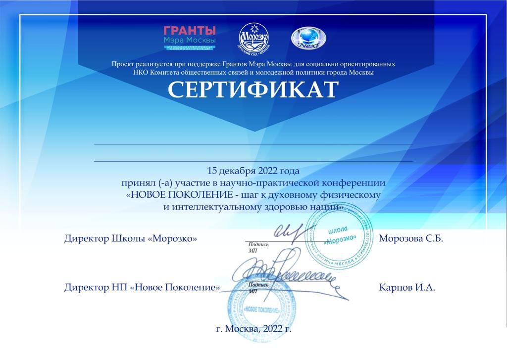 20-го ноября 2025 года на заседании Президиума Российской Академии Образования Школе "МОРОЗКО" присвоен статус