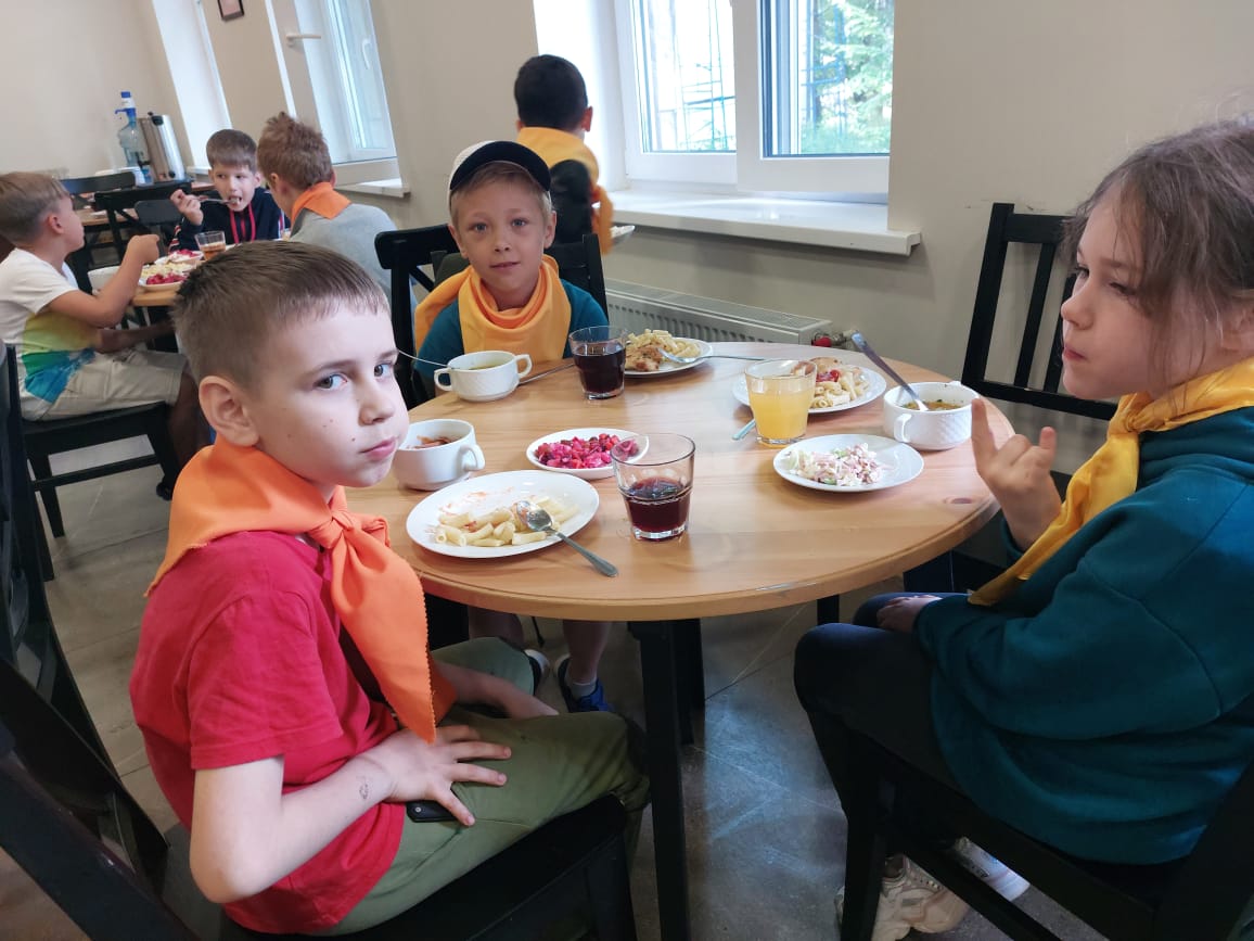 Каждый день начинался в нашем лагере зарядкой и линейкой, на которой подводились итоги предыдущего дня и ставились задачи на текущий день. А началась программа Дня Здоровья общей линейкой с поднятием флага и гимном России. Ребята в самый первый день разбились на отряды, придумали названия и девизы каждого отряда, выбрали командиров, которые помогали взрослым в организации жизни и следованию правилам и законам, установленным в лагере с самой первой минуты: закон порядка, чистоты, дисциплины и тайминга, когда никто никого не ждет и никто никуда не опаздывает, закон территории, когда никтотне выходит за территорию лагеря, закон взаимного уважения и взаимовыручки, когда один за всех и все за одного, закон добра и улыбок, которые располагают к себе любого,даже самого угрюмого человека, закон энергии и оптимизма, когда никто не скучает и все принимают самое активное участие во всех мероприятиях программы лагеря.