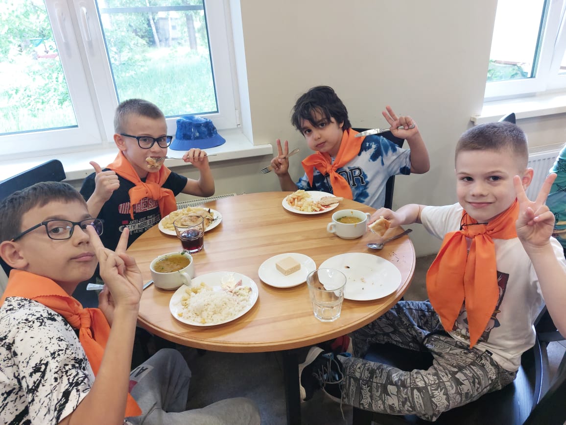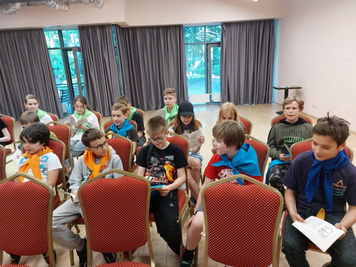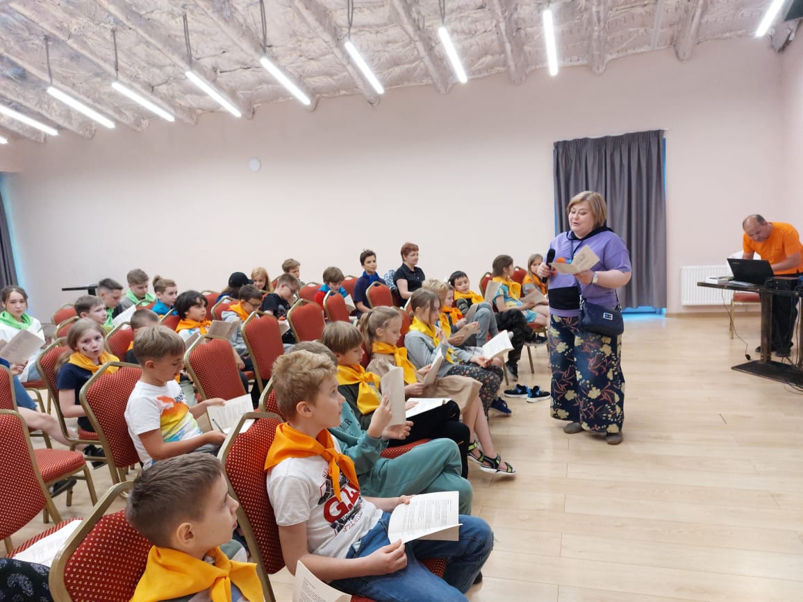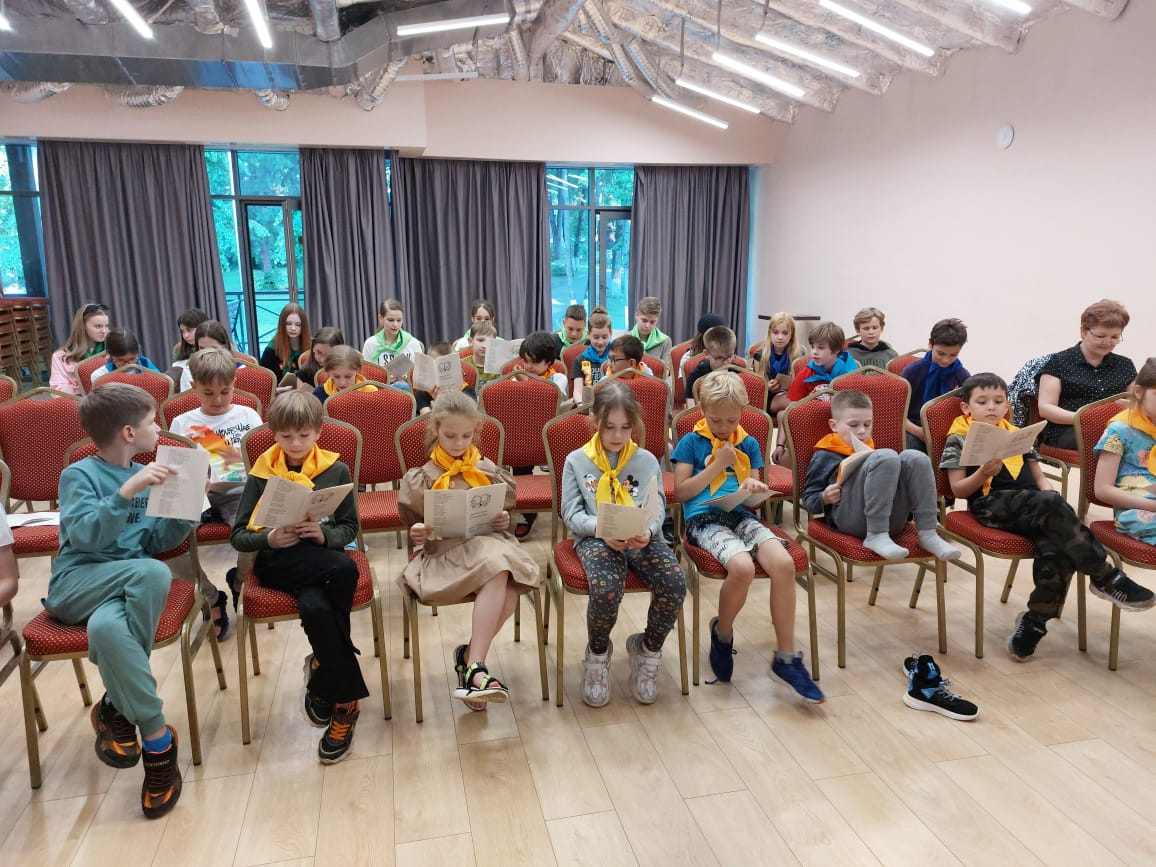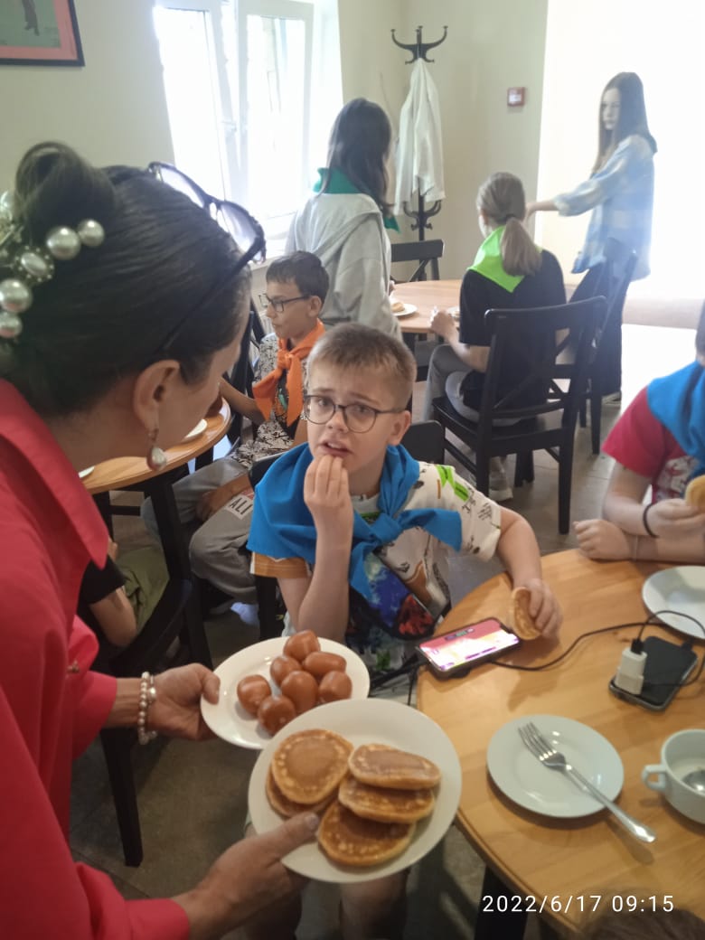 Ну и, конечно, какой лагерь без песни? Каждый день ребята пели любимые песни и разучивали новые. И это были не только веселые,детские песни, но и песни патриотические, а также русские народные песни. Поскольку недавно прошел Великий Праздник Троицы, ребята узнали о том, как на Руси встречали этот праздник, какие песни пели, как водили хороводы. Конечно, была организована и музыкально-танцевальная программа. А еще ребята смотрели фильмы и обсуждали вместе со взрослыми очень важные вопросы дружбы и предательства, честности и обмана, добра и зла, бескорыстия и зависти - все те чувства, которые двигали героями фильмов. С огромным интересом ребята посмотрели фильм "Частное пионерское" о дружбе двух мальчиков, которые рискуя собственной жизнью, спасали собаку. Вместе с героями фильма переживали, смеялись и плакали наши ребята. И по их реакции мы поняли,что не напрасно все то, что закладываем мы с детства в наших детей. Если мы учим дружить, сострадать, приходить в трудную минуту на помощь друг другу, значит наши дети обязательно станут хорошими, достойными людьми, а еще сильными, выносливыми, умными, находчивыми и очень позитивными, добрыми, настоящими, надежными друзьями.