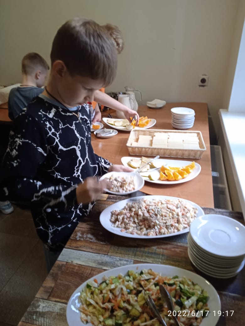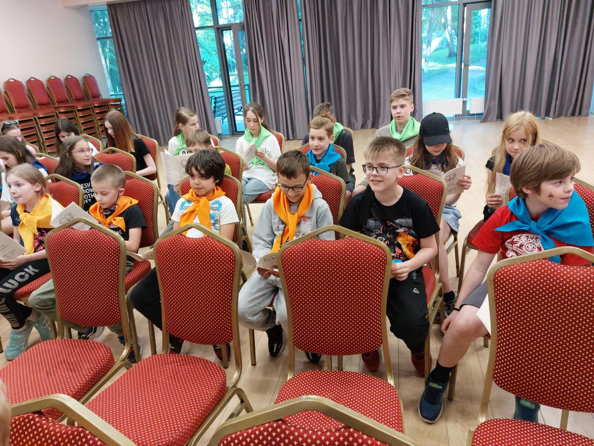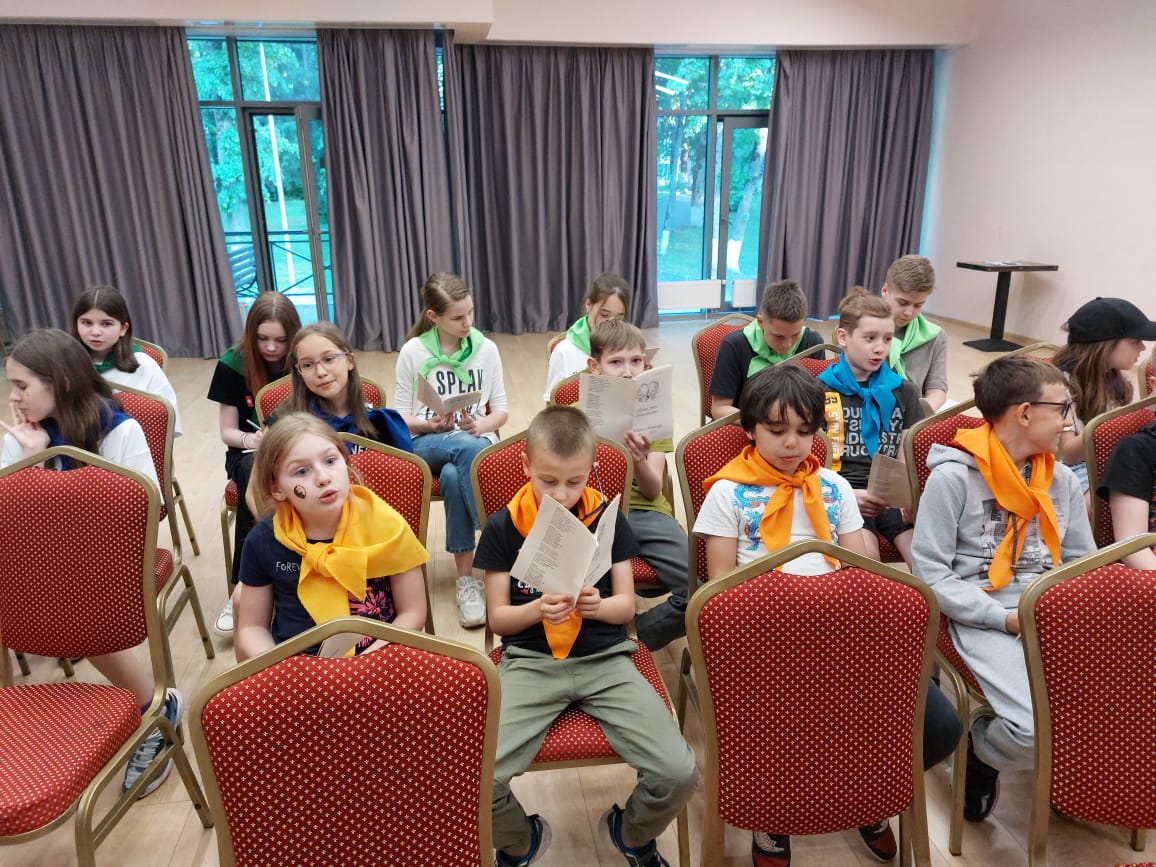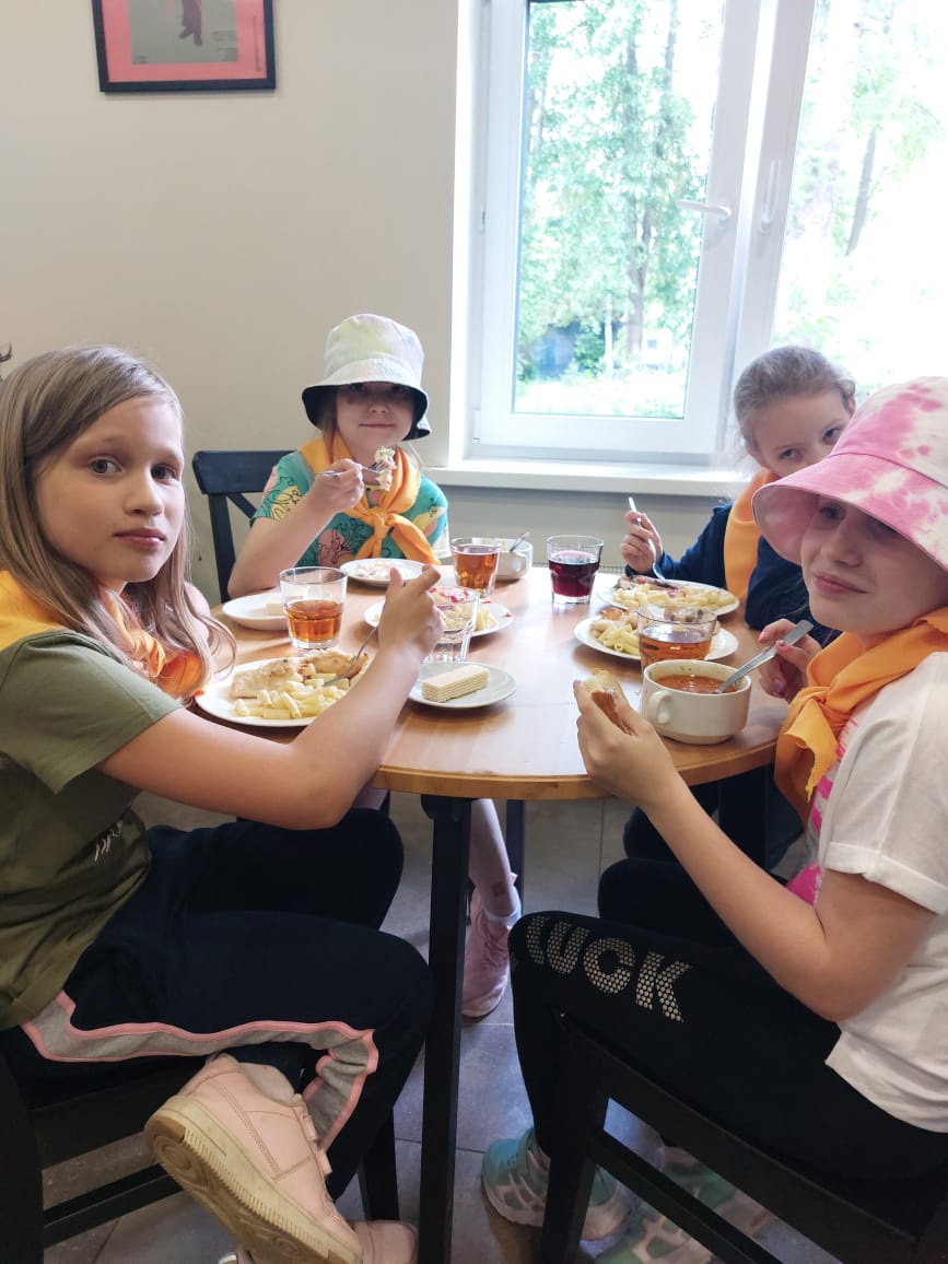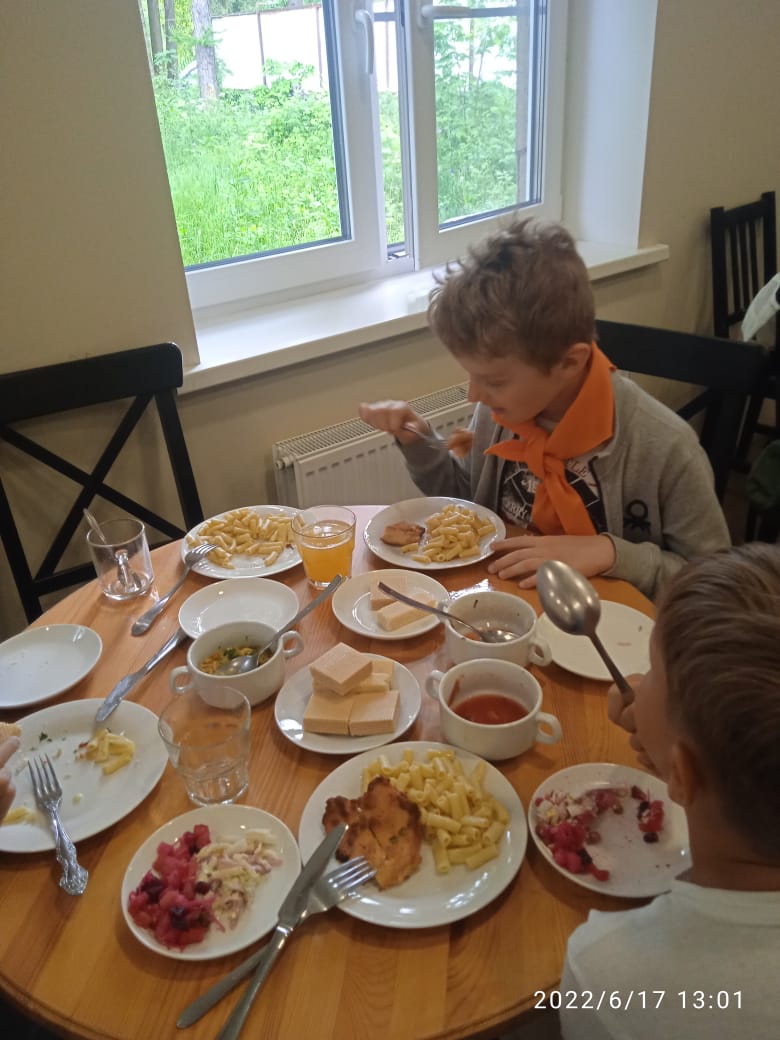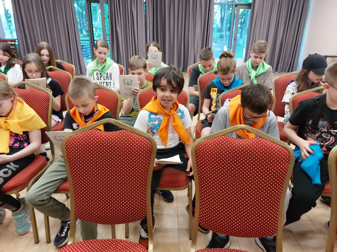Ну и, конечно, какой лагерь без песни? Каждый день ребята пели любимые песни и разучивали новые. И это были не только веселые,детские песни, но и песни патриотические, а также русские народные песни. Поскольку недавно прошел Великий Праздник Троицы, ребята узнали о том, как на Руси встречали этот праздник, какие песни пели, как водили хороводы. Конечно, была организована и музыкально-танцевальная программа. А еще ребята смотрели фильмы и обсуждали вместе со взрослыми очень важные вопросы дружбы и предательства, честности и обмана, добра и зла, бескорыстия и зависти - все те чувства, которые двигали героями фильмов. С огромным интересом ребята посмотрели фильм "Частное пионерское" о дружбе двух мальчиков, которые рискуя собственной жизнью, спасали собаку. Вместе с героями фильма переживали, смеялись и плакали наши ребята. И по их реакции мы поняли,что не напрасно все то, что закладываем мы с детства в наших детей. Если мы учим дружить, сострадать, приходить в трудную минуту на помощь друг другу, значит наши дети обязательно станут хорошими, достойными людьми, а еще сильными, выносливыми, умными, находчивыми и очень позитивными, добрыми, настоящими, надежными друзьями.