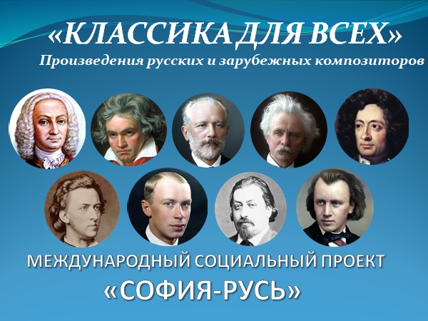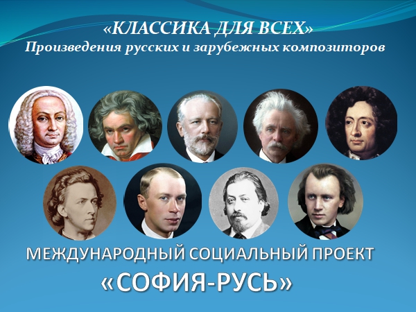 Пост-релиз концерта. Смотреть.В рамках Международного Социального Проекта «София-Русь», нацеленного на объединение творческих людей самого разного возраста, проводятся не только конкурсы по различных направлениям искусства, культуры, науки и образования. Организуются творческие вечера и встречи с интересными людьми, известными деятелями науки, искусства и культуры, проводятся благотворительные акции и мероприятия, праздники различной тематики для инвалидов, детей из многодетных и социально незащищенных семей, занимаемся просветительской деятельностью, проводим музыкальные гостиные, концерты классической и народной музыки. С 2018 года мы организовали цикл музыкальных вечеров «КЛАССИКА ДЛЯ ВСЕХ».