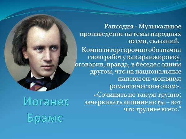 - Иоганнес Брамс, опус 79, №2, Рапсодия соль минор