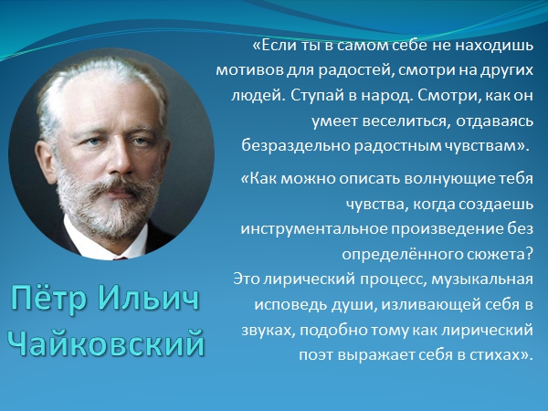 Старшее поколение знает классическую музыку намного лучше, чем нынешнее подрастающее поколение. Не вина детей в том, что сейчас больше звучит популярная музыка, и порой не самого лучшего качества. Именно эти популярные шлягеры и хиты, к великому сожалению, является эталоном музыкальных вкусов и предпочтений прежде всего молодежи, которая не понимает и не воспринимает подчас классической музыки. Не вина наших детей и в том, что они не застали того времени, когда из окон домов доносилась классическая музыка, когда принято было посещать концерты классической музыки, что являлось показателем определенного уровня культуры. Даже самые немузыкальные люди разбирались в классической музыке и достаточно хорошо определяли на слух произведения Моцарта, Чайковского, Баха, Шопена… Нельзя допустить, чтобы классика уходила из нашей жизни и к ней относились как к пережиткам прошлого. Потому что именно прекрасная музыка является источником радости, вдохновения, самых прекрасных чувств и эмоций, которые только может испытать и почувствовать человек. Прекрасная классическая музыка помогала многим людям переживать беды и трагедии как своей жизни , так и жизни страны . Как известно, под музыку Моцарта расцветают цветы, а маленькие дети, если с детства слушают музыку этого гениального композитора, не просто становятся спокойнее, а опережают в развитии своих сверстников. И это общеизвестный, научно признанный факт. Классическая музыка, даже если она полна печали и грусти, положительно влияет на эмоциональное состояние человека, обогащает его внутренний мир. Иными словами, именно музыка делает людей счастливыми – и тех, кто ее слушает , и тех, кто ее исполняет …