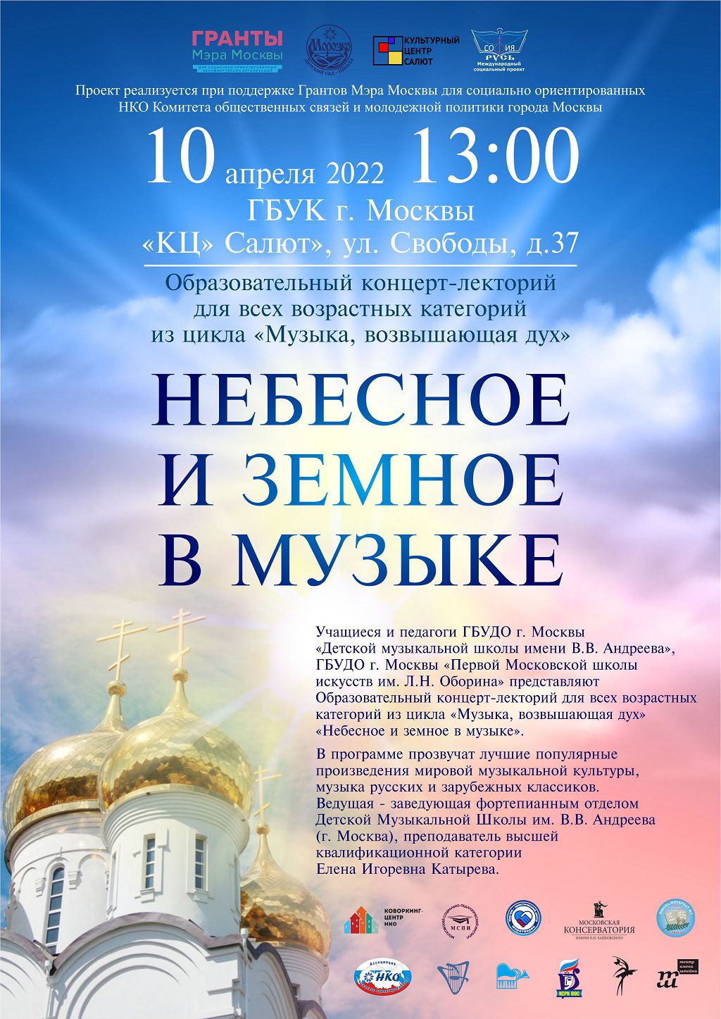 13 октября, 3 и 24 ноября, 8 декабря в ЦК "Салют" (Москва, ул.Свободы, д.37) состоятся концерты классической
