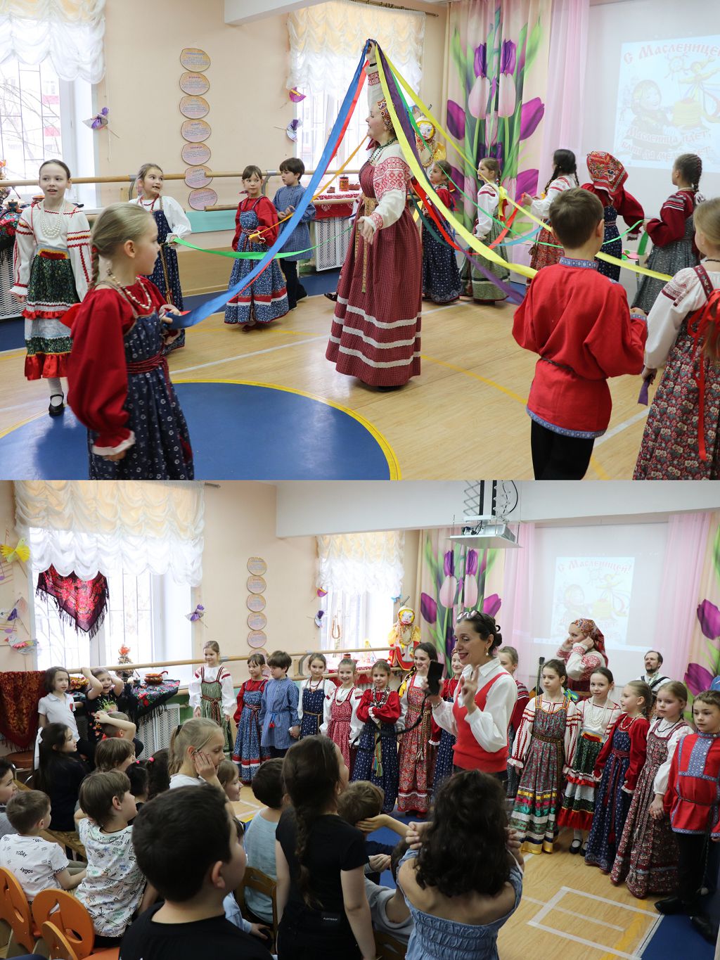 На Масленицу педагоги рассказывают детям о значении каждого дня масленичной недели, об обычаях, которые испокон веков сложились на Руси. Сами дети активно вовлекаются в процесс творчества и оформления классов и групп, в фольклорную программу, разучивание стихов, песен, в подготовку и проведение игр и конкурсов, которые проводятся на Масленицу.