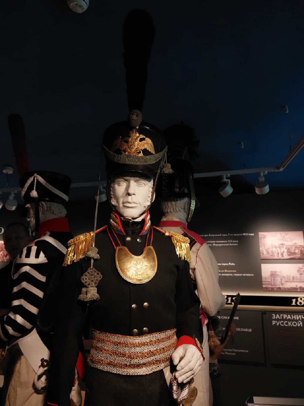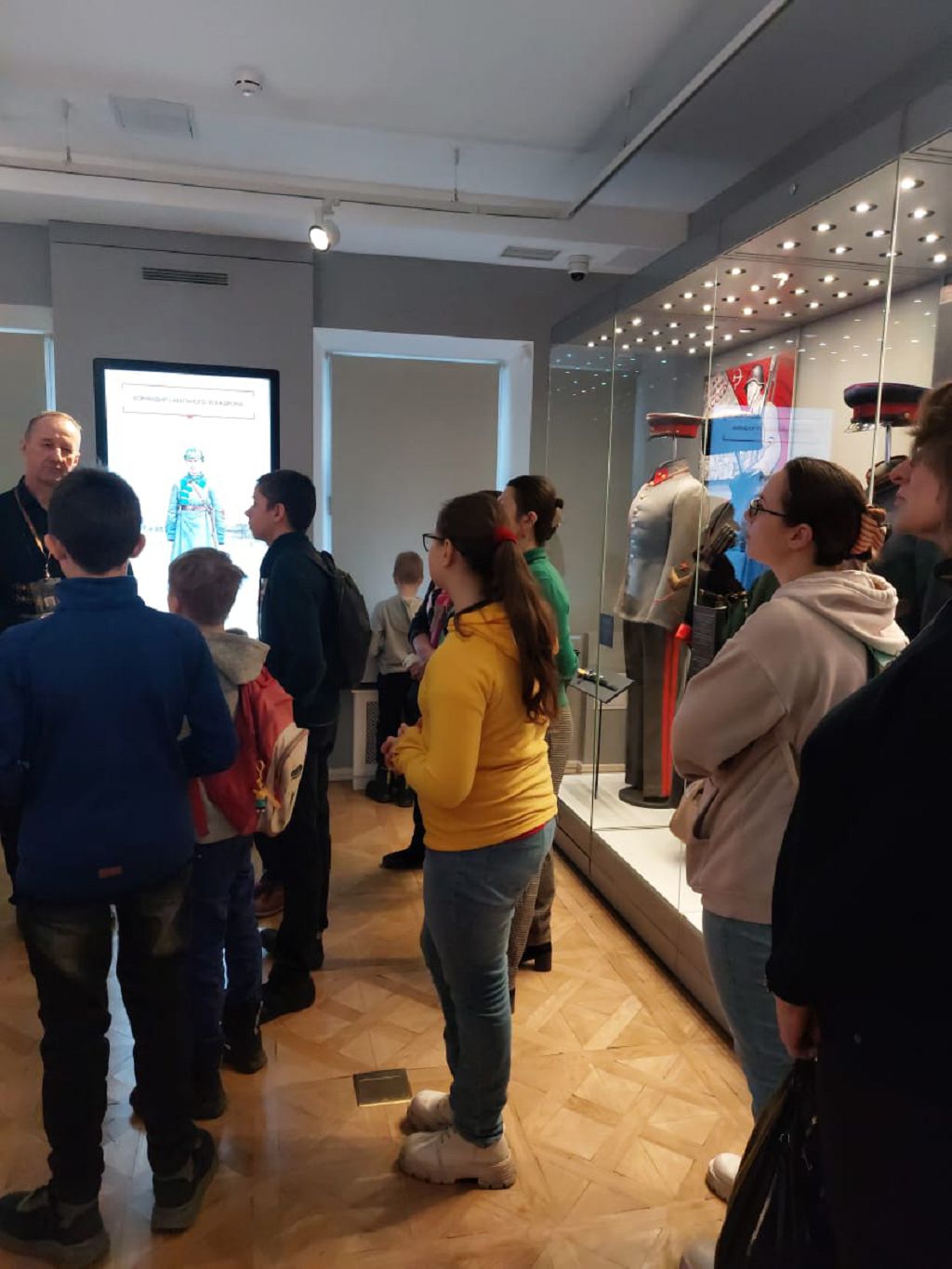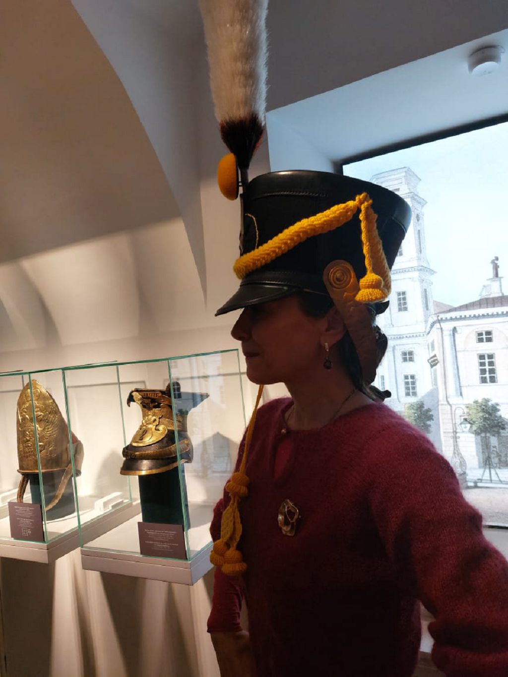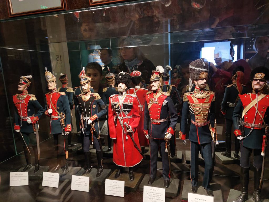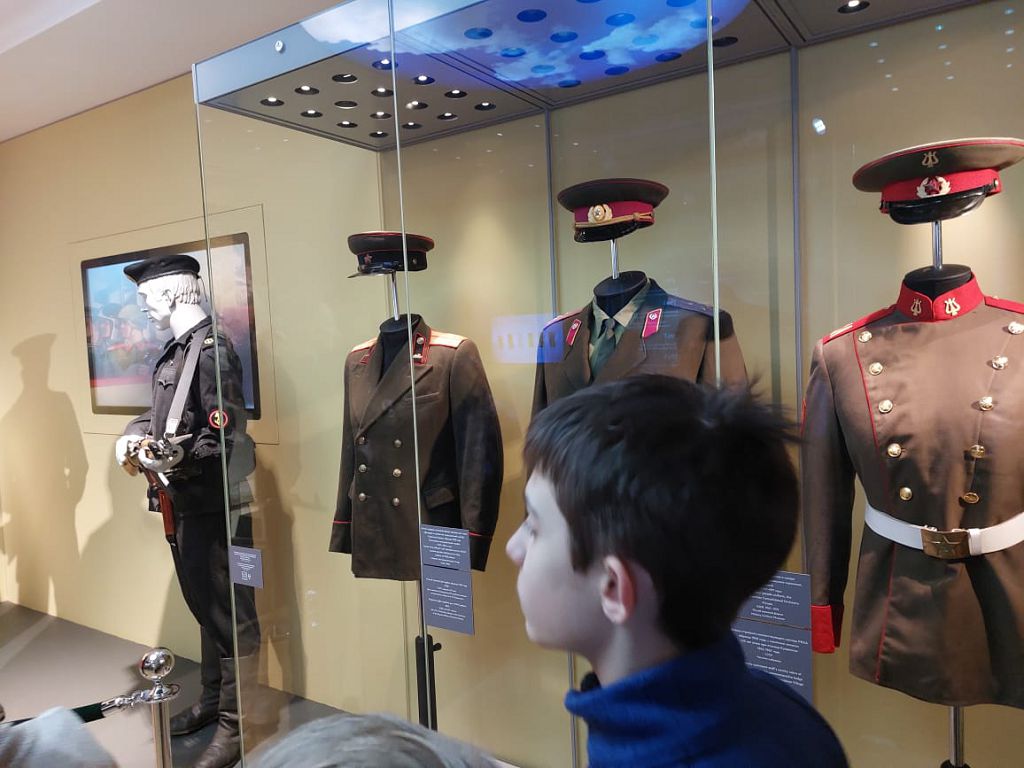 И, конечно, мы увидели, насколько красива была военная форма, особенно форма Российской Императорской Армии, которая поражает безупречным вкусом и прекрасной цветовой гаммой! Как будто изобретали и делали лекала для военной формы лучшие кутюрье того времени. Возможно, так оно и было?… Мы побывали в зале, где могли на мультимедийном экране сами собрать элементы экипировки военных разных родов войск, узнали, как называются те или иные элементы обмундирования. Узнали, кто такие гусары, кирасиры, уланы и в чем отличия в их форме, откуда вообще взялись эти невероятно красивые кивера. А после экскурсии мы смогли самостоятельно пройти по залам и еще раз не только более внимательно рассмотреть экспонаты, но даже примерить некоторые головные уборы!