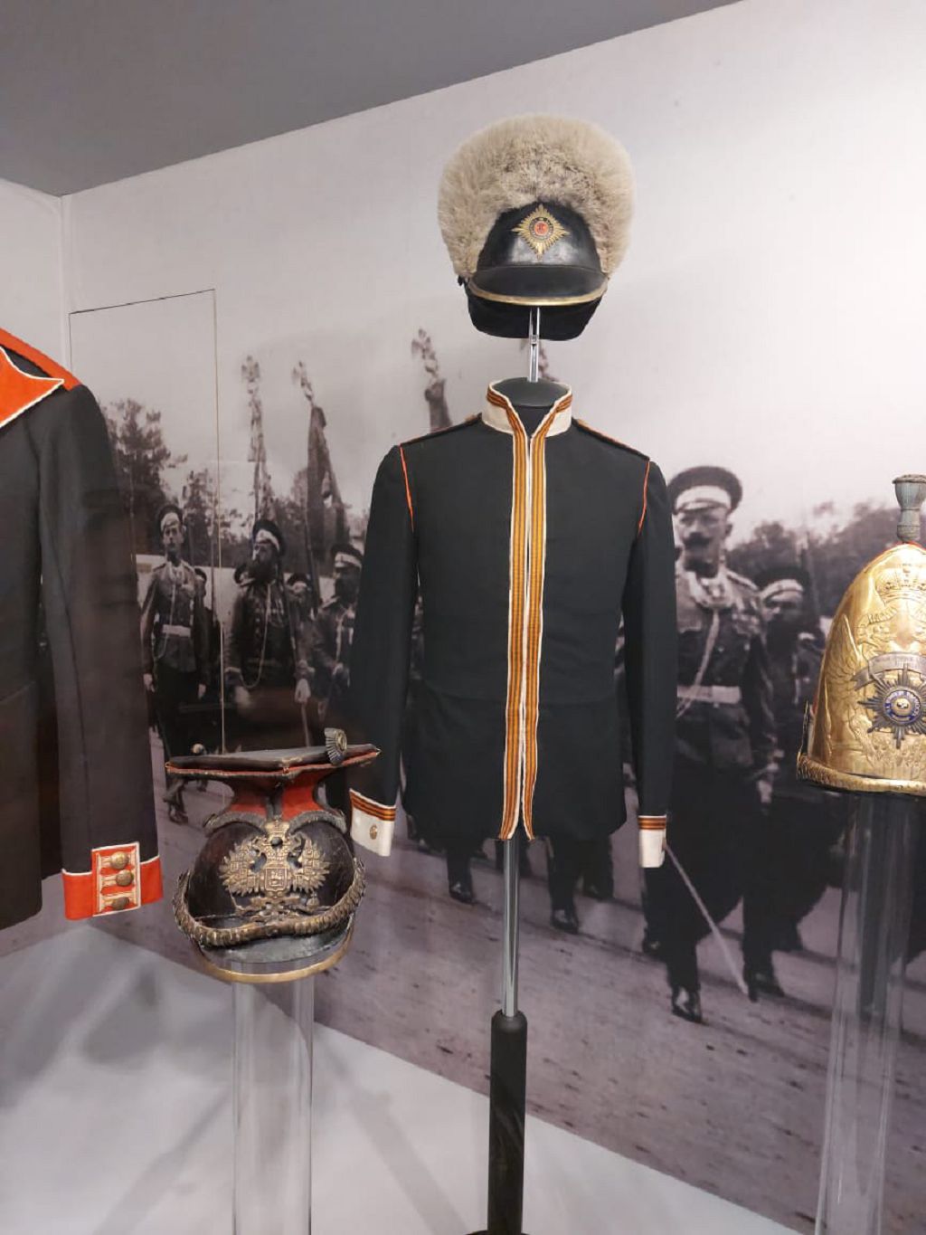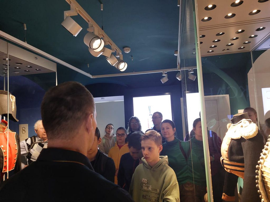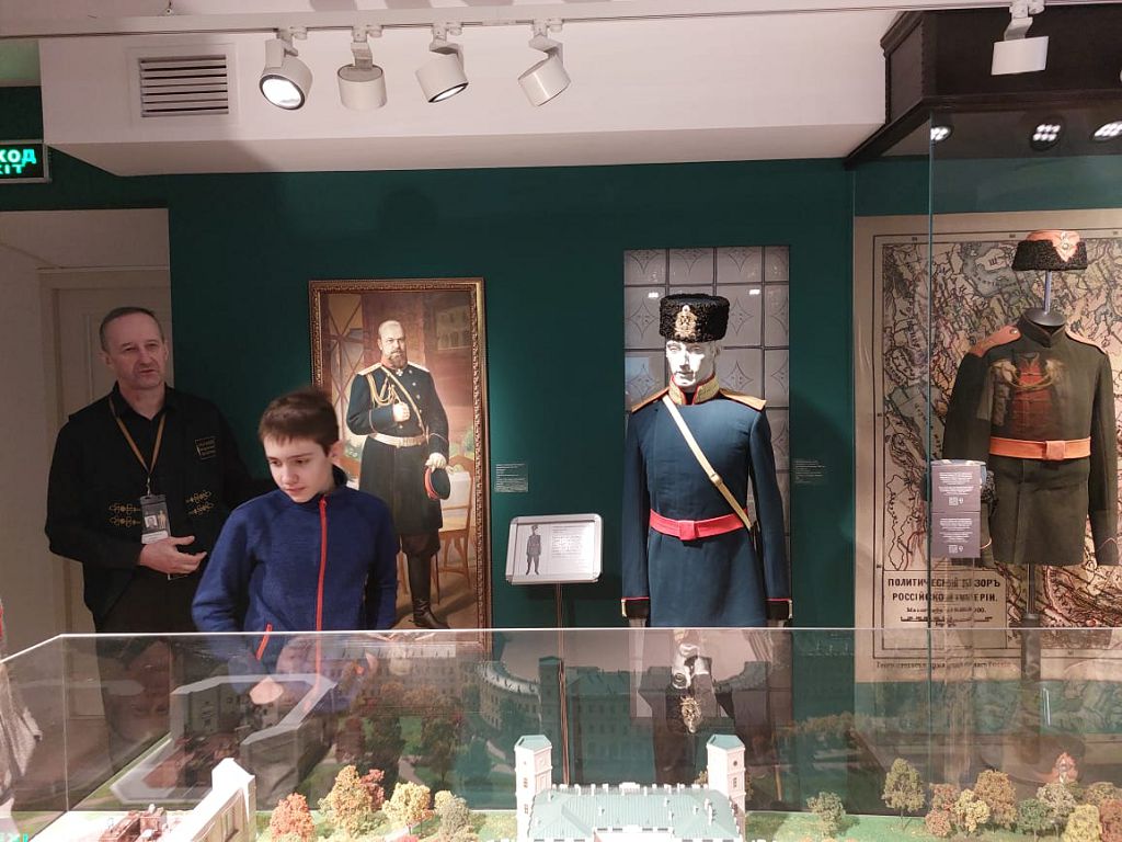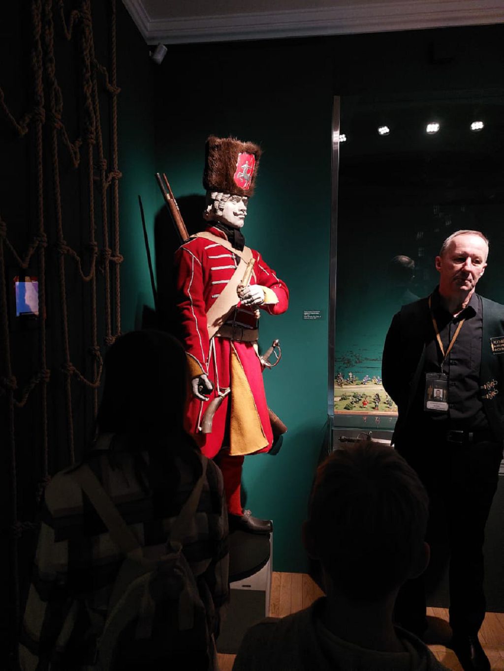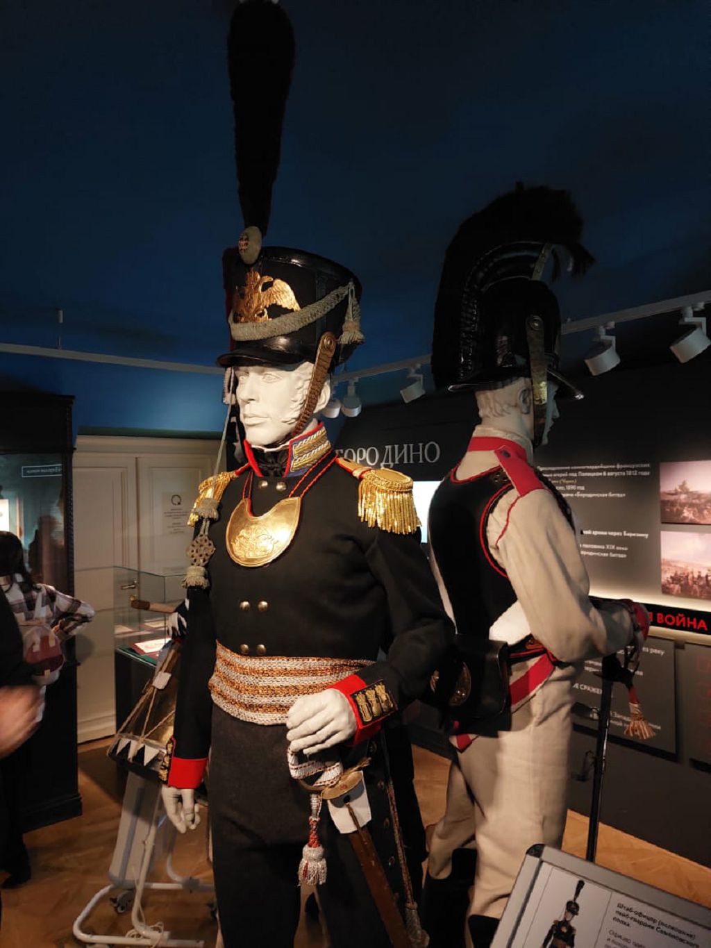 И, конечно, мы увидели, насколько красива была военная форма, особенно форма Российской Императорской Армии, которая поражает безупречным вкусом и прекрасной цветовой гаммой! Как будто изобретали и делали лекала для военной формы лучшие кутюрье того времени. Возможно, так оно и было?… Мы побывали в зале, где могли на мультимедийном экране сами собрать элементы экипировки военных разных родов войск, узнали, как называются те или иные элементы обмундирования. Узнали, кто такие гусары, кирасиры, уланы и в чем отличия в их форме, откуда вообще взялись эти невероятно красивые кивера. А после экскурсии мы смогли самостоятельно пройти по залам и еще раз не только более внимательно рассмотреть экспонаты, но даже примерить некоторые головные уборы!