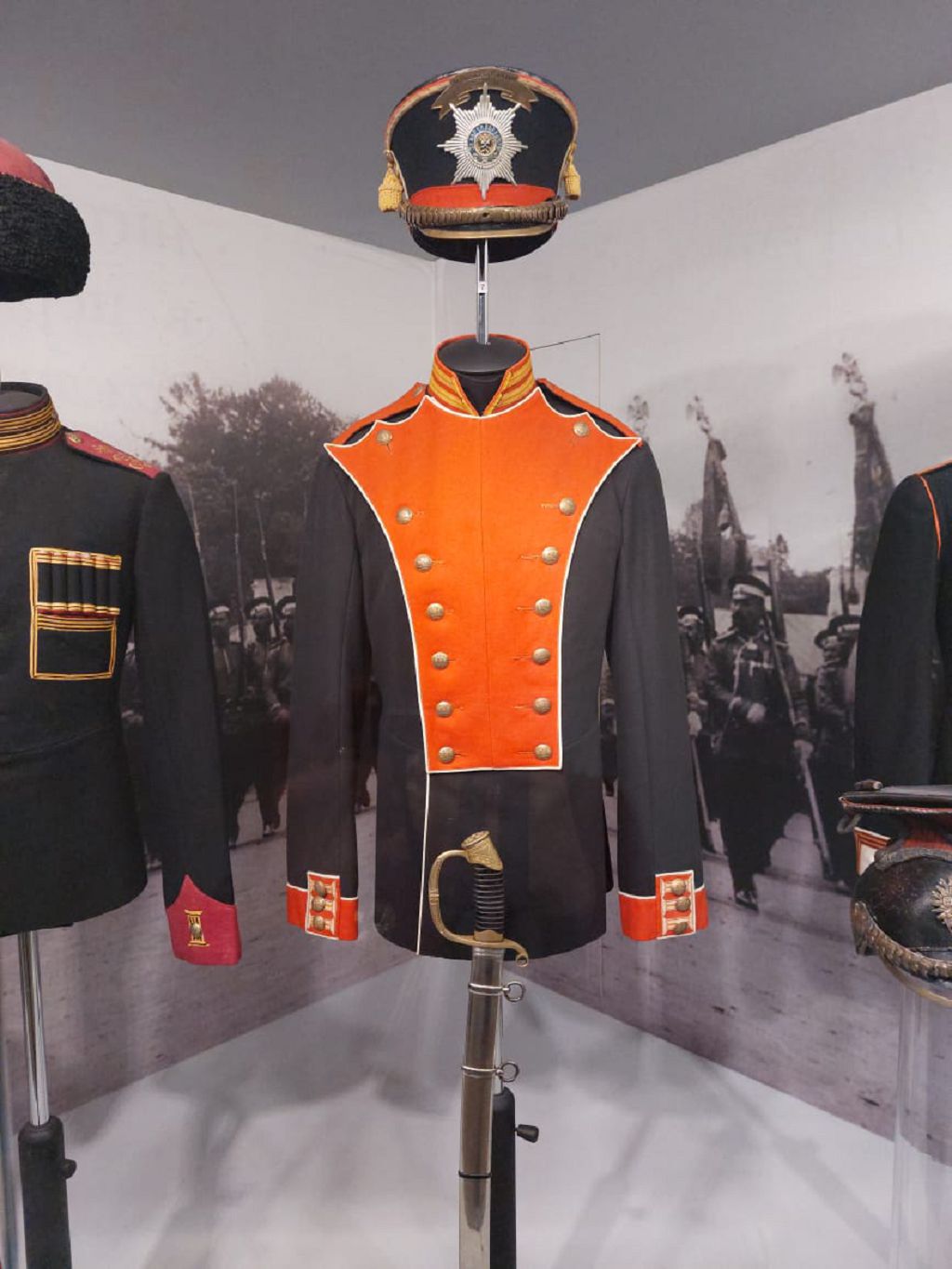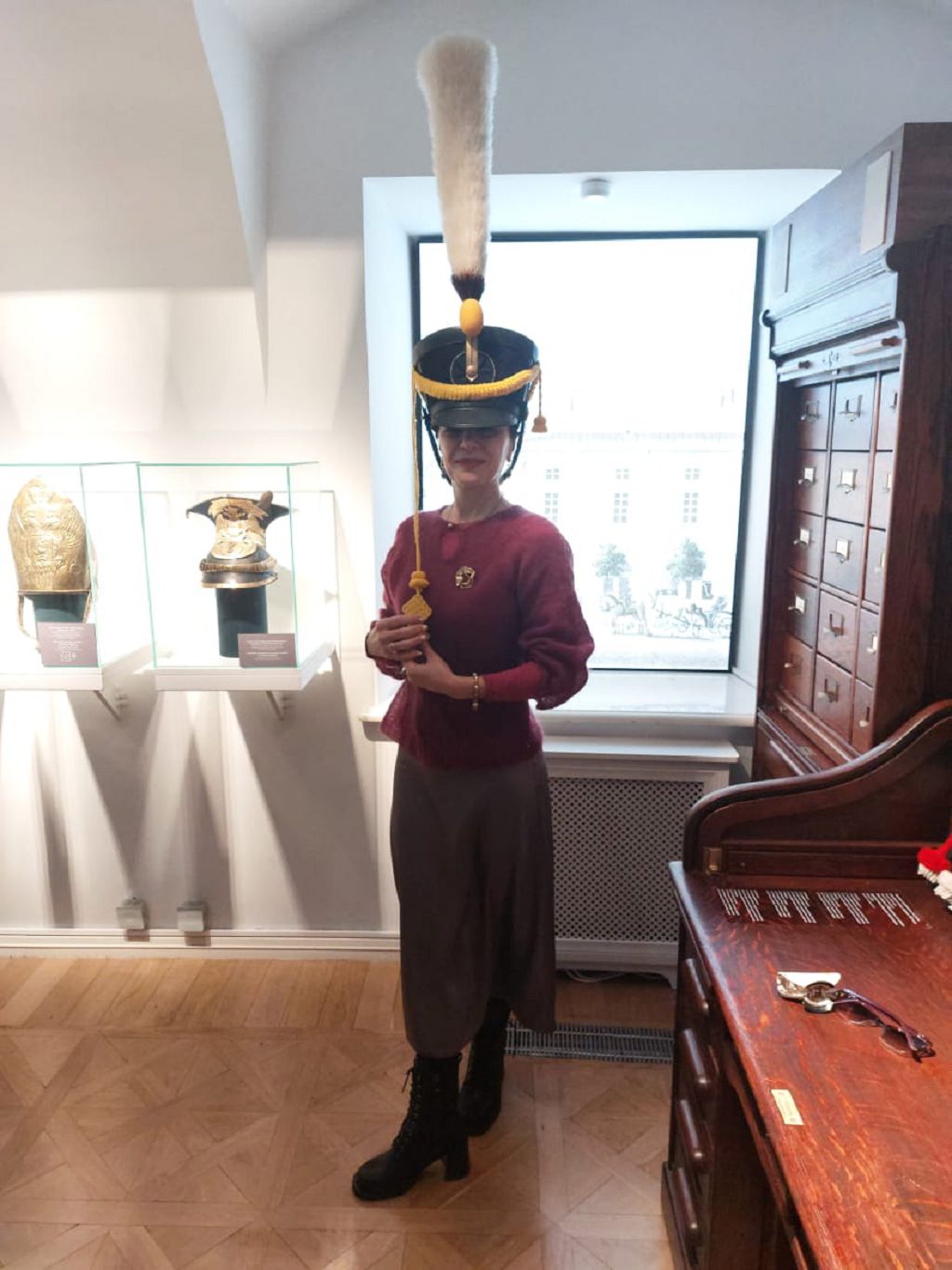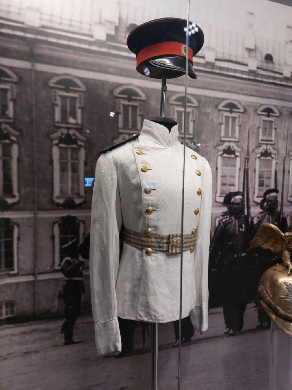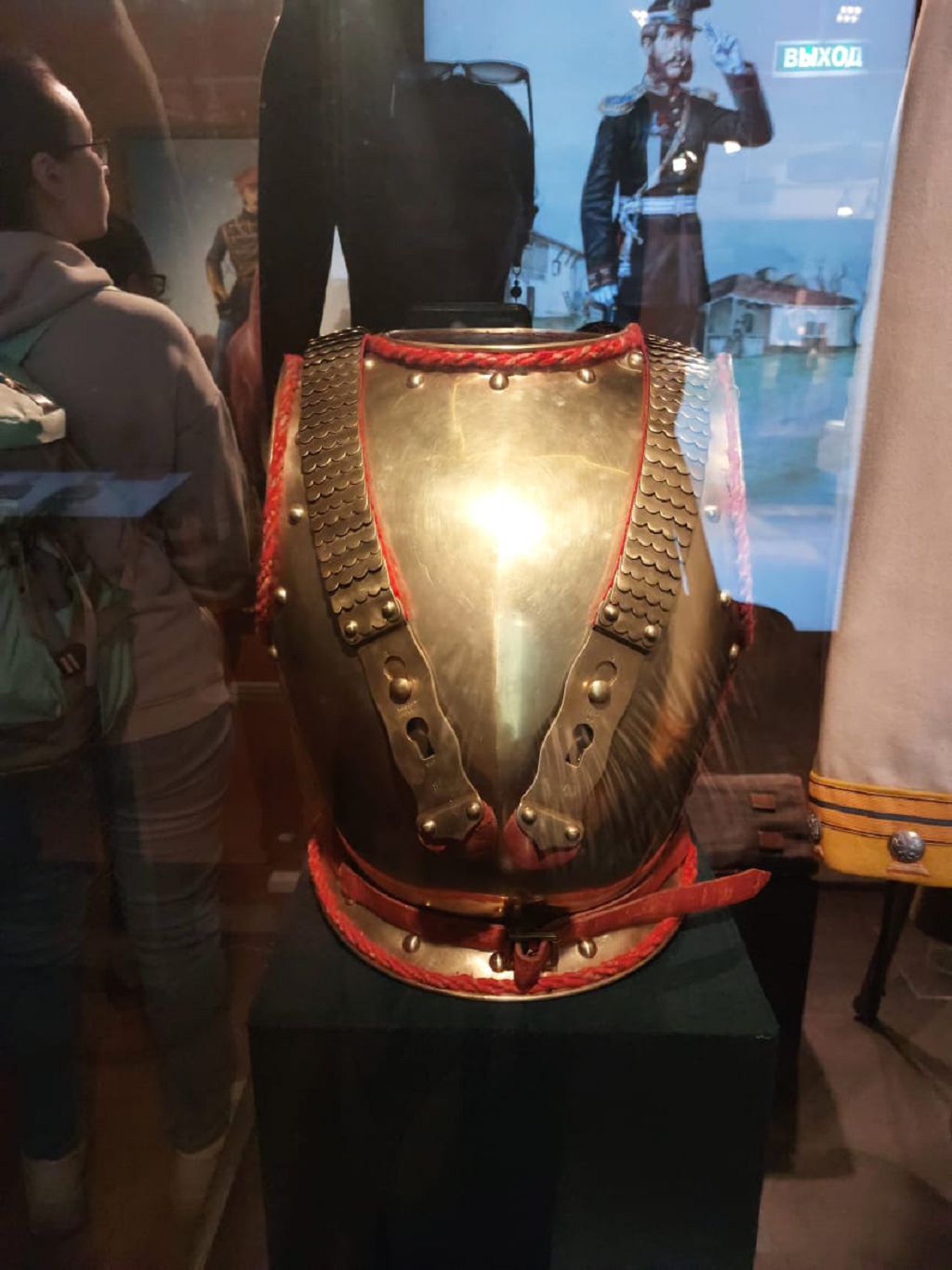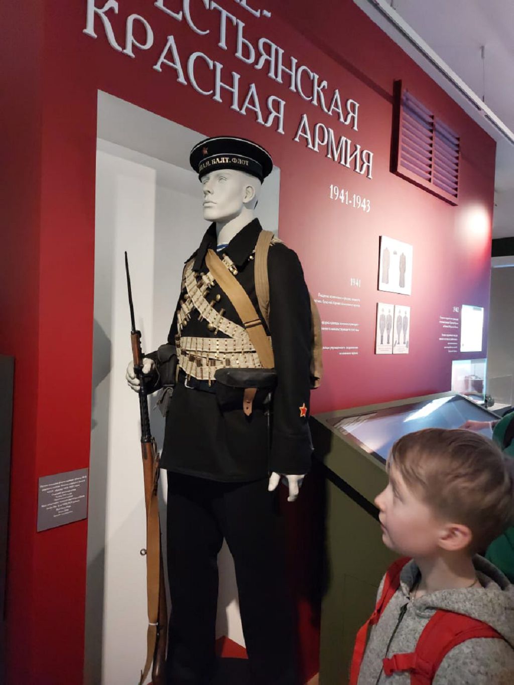 И, конечно, мы увидели, насколько красива была военная форма, особенно форма Российской Императорской Армии, которая поражает безупречным вкусом и прекрасной цветовой гаммой! Как будто изобретали и делали лекала для военной формы лучшие кутюрье того времени. Возможно, так оно и было?… Мы побывали в зале, где могли на мультимедийном экране сами собрать элементы экипировки военных разных родов войск, узнали, как называются те или иные элементы обмундирования. Узнали, кто такие гусары, кирасиры, уланы и в чем отличия в их форме, откуда вообще взялись эти невероятно красивые кивера. А после экскурсии мы смогли самостоятельно пройти по залам и еще раз не только более внимательно рассмотреть экспонаты, но даже примерить некоторые головные уборы!