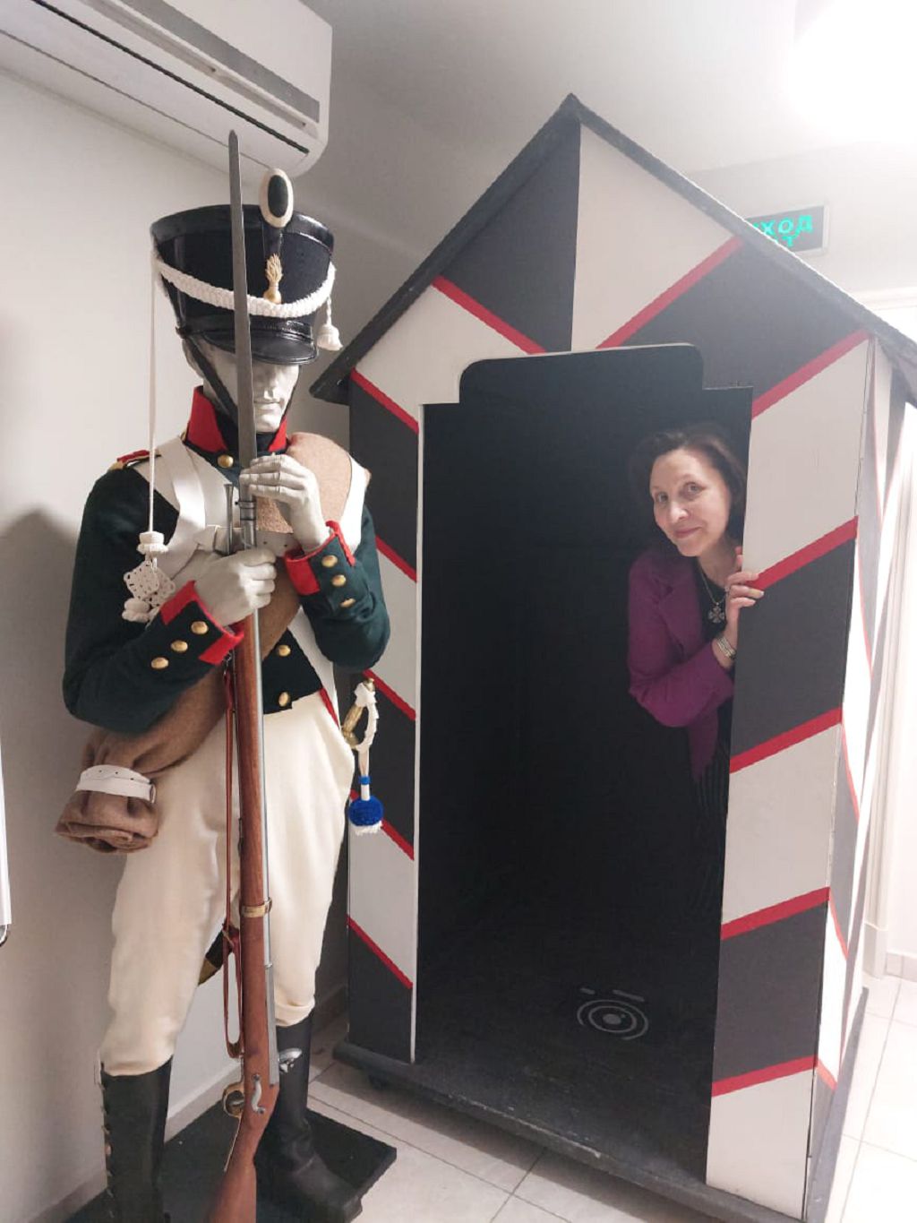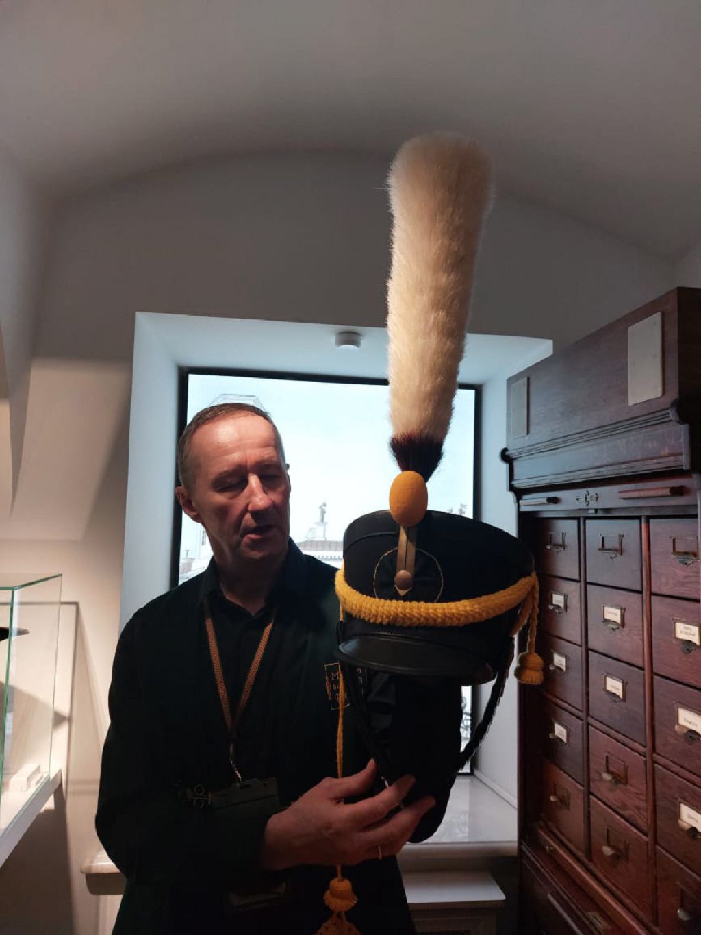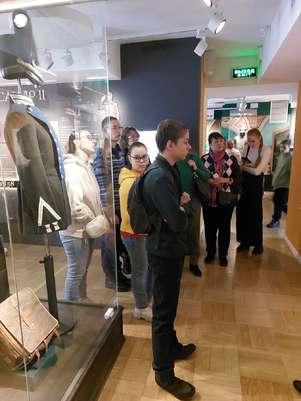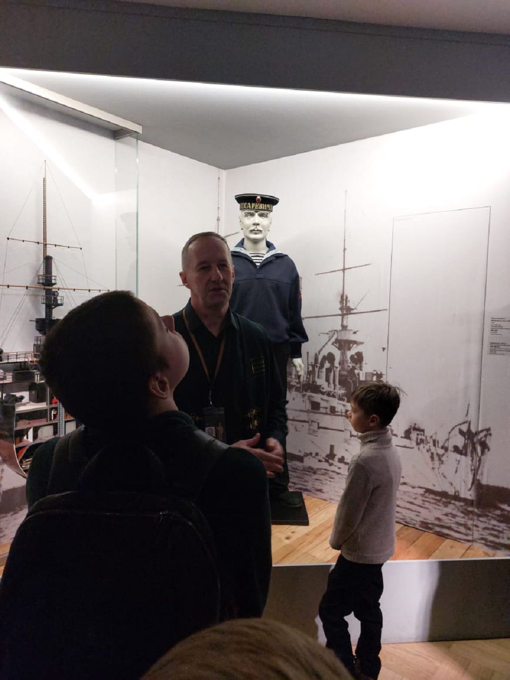 И, конечно, мы увидели, насколько красива была военная форма, особенно форма Российской Императорской Армии, которая поражает безупречным вкусом и прекрасной цветовой гаммой! Как будто изобретали и делали лекала для военной формы лучшие кутюрье того времени. Возможно, так оно и было?… Мы побывали в зале, где могли на мультимедийном экране сами собрать элементы экипировки военных разных родов войск, узнали, как называются те или иные элементы обмундирования. Узнали, кто такие гусары, кирасиры, уланы и в чем отличия в их форме, откуда вообще взялись эти невероятно красивые кивера. А после экскурсии мы смогли самостоятельно пройти по залам и еще раз не только более внимательно рассмотреть экспонаты, но даже примерить некоторые головные уборы!