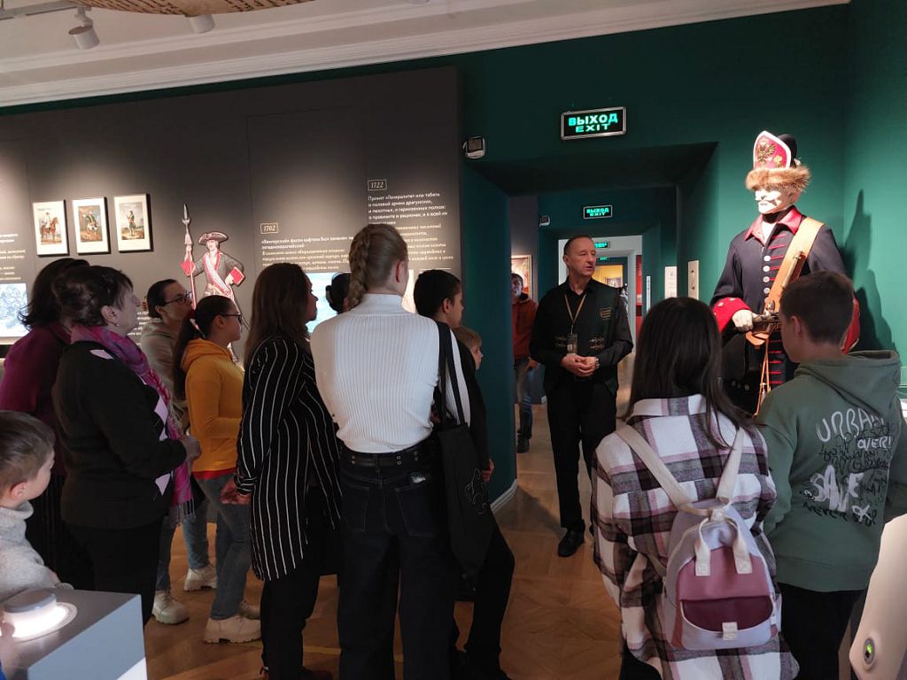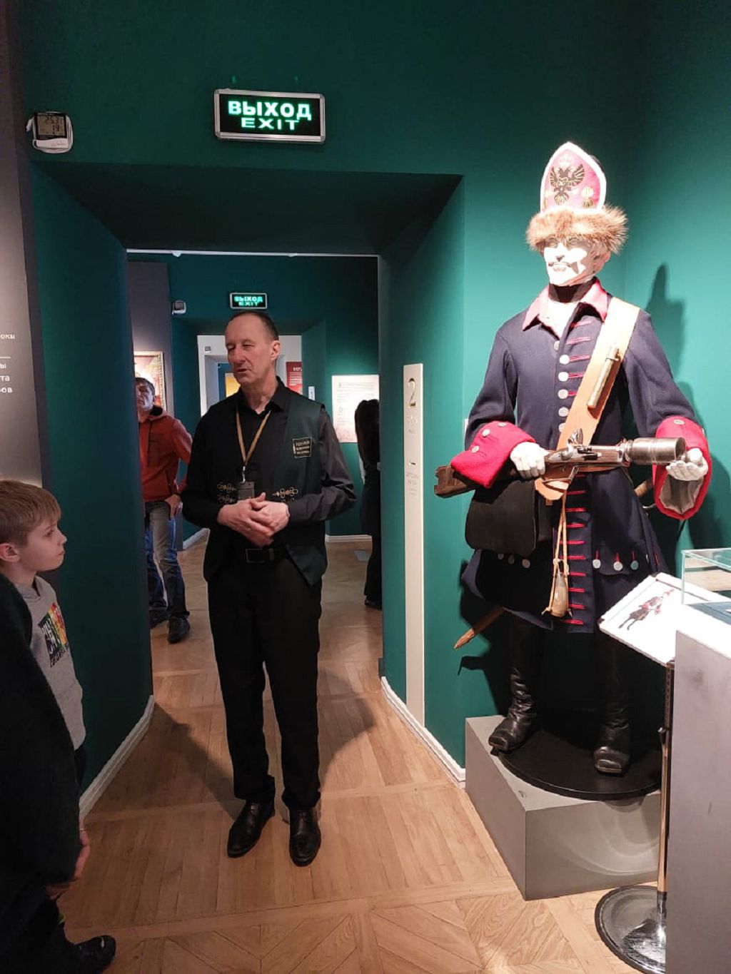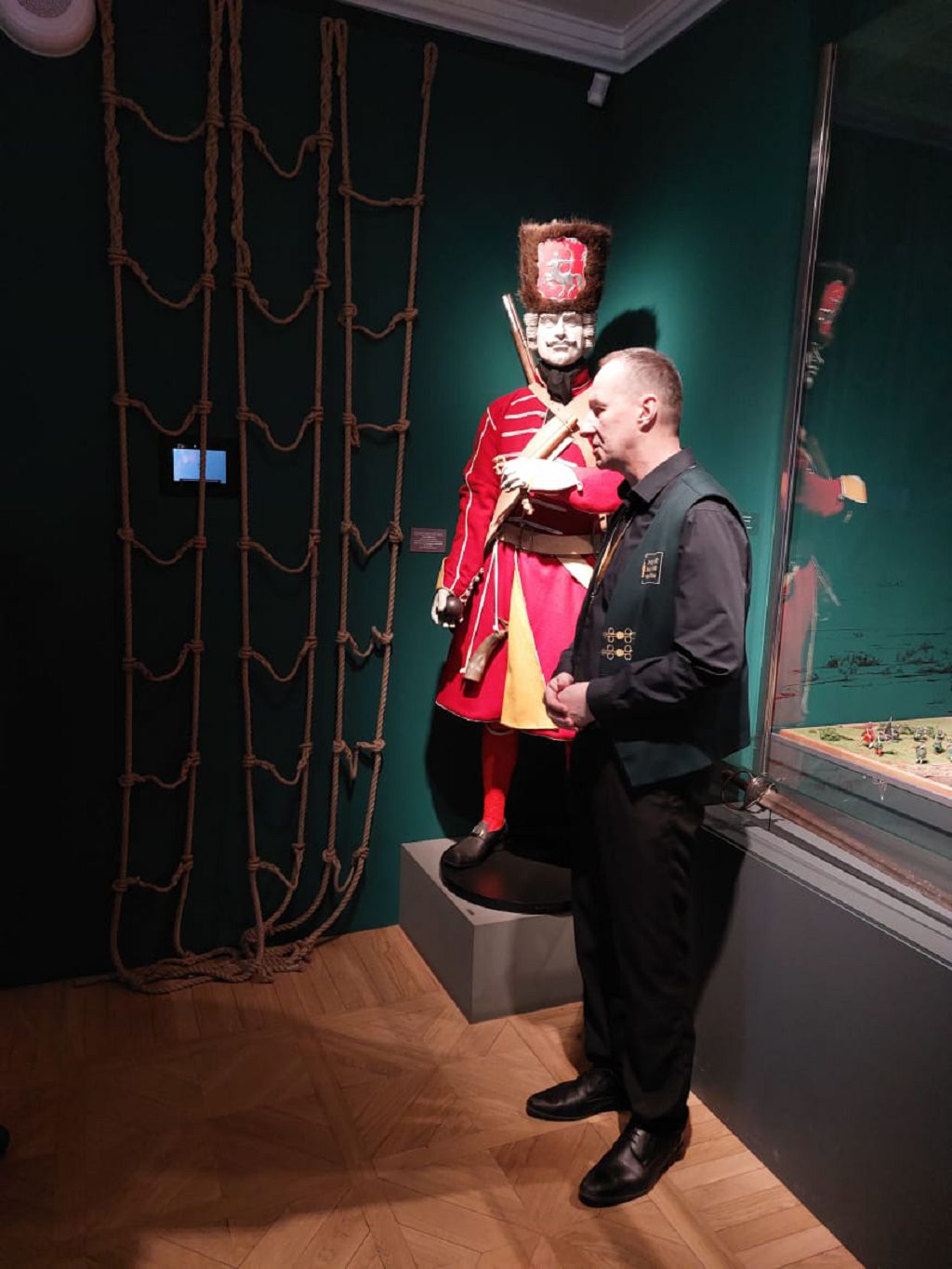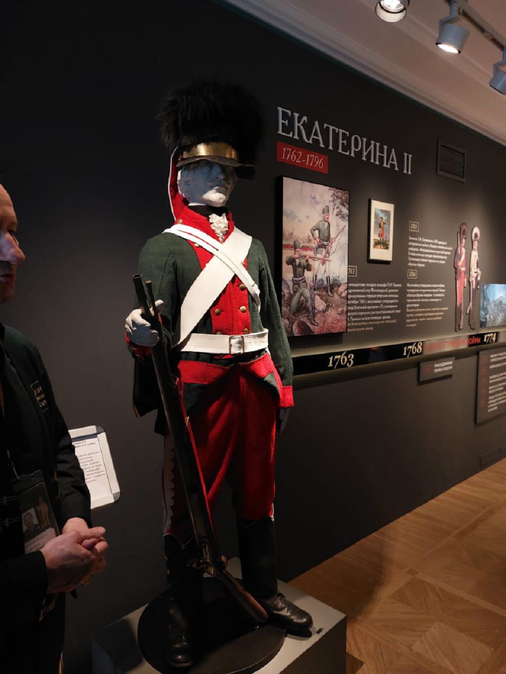 Замечательный экскурсовод Денис Викторович очень интересно рассказал о том, какое место занимал мундир в жизни служилого человека, как возникло само понятие — «честь мундира» и почему в среде профессиональных военных оно неотделимо от образа защитника Отечества.