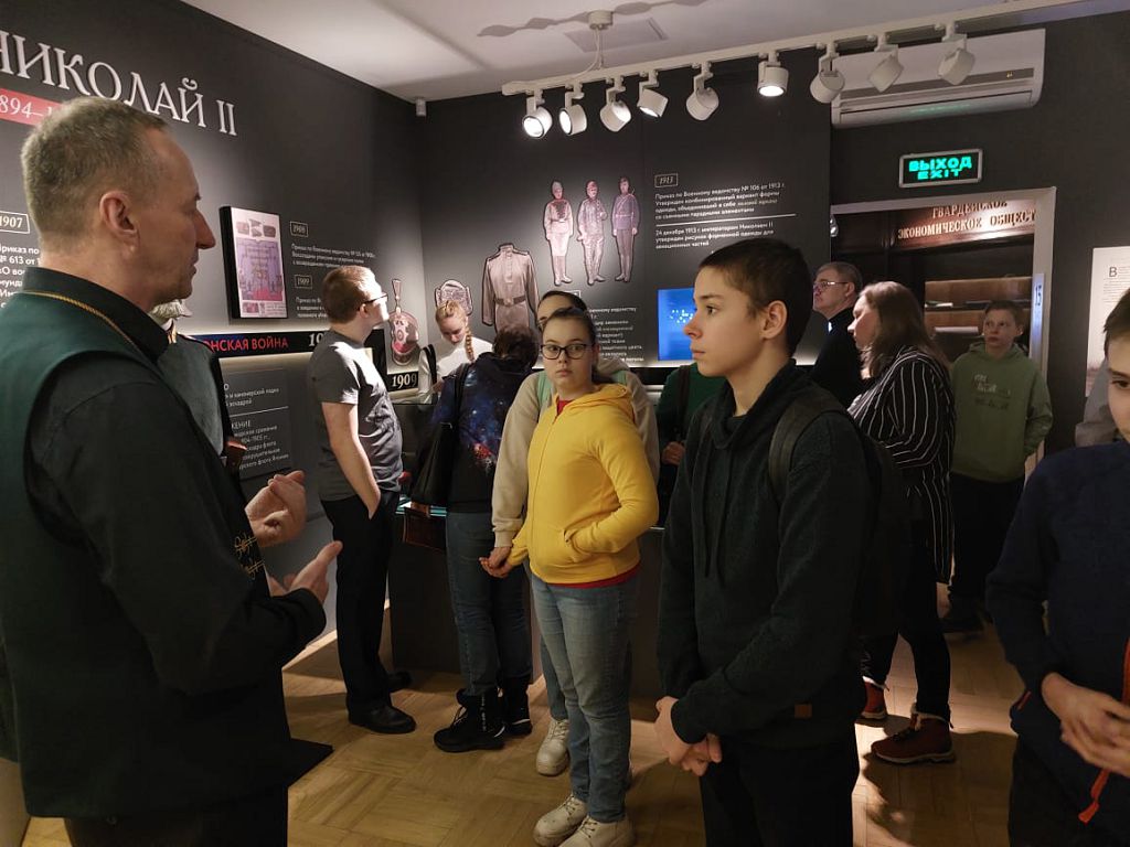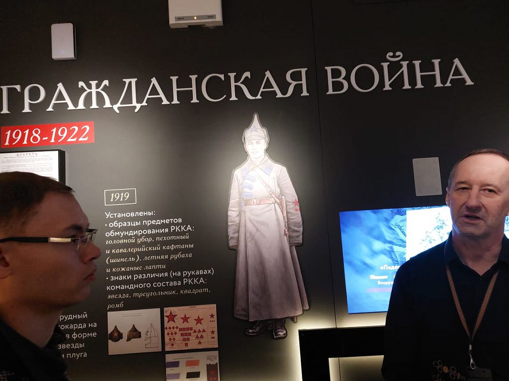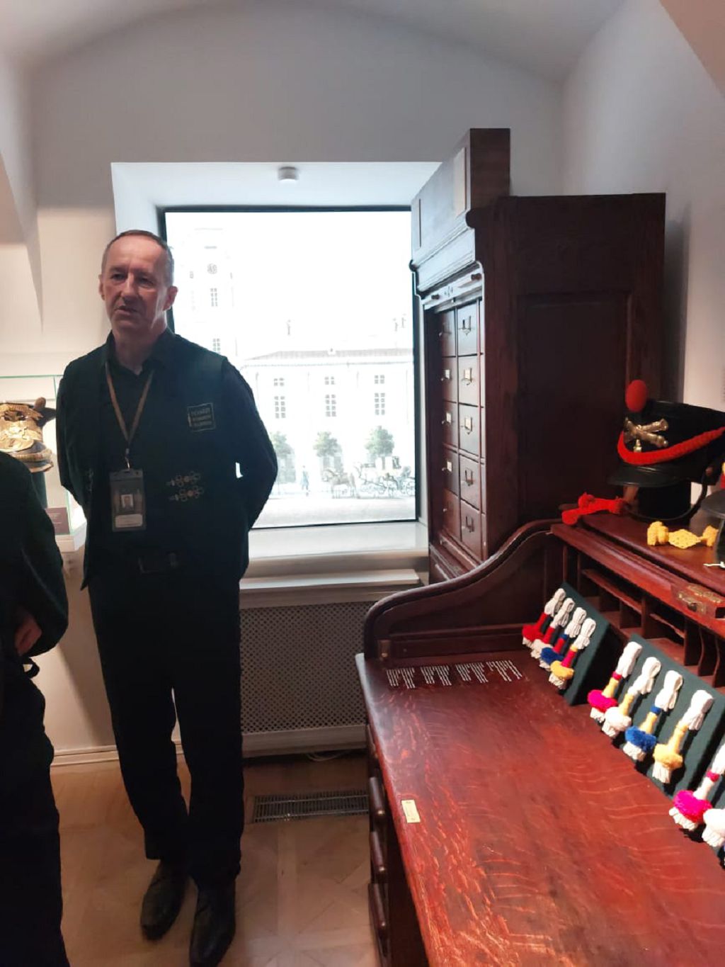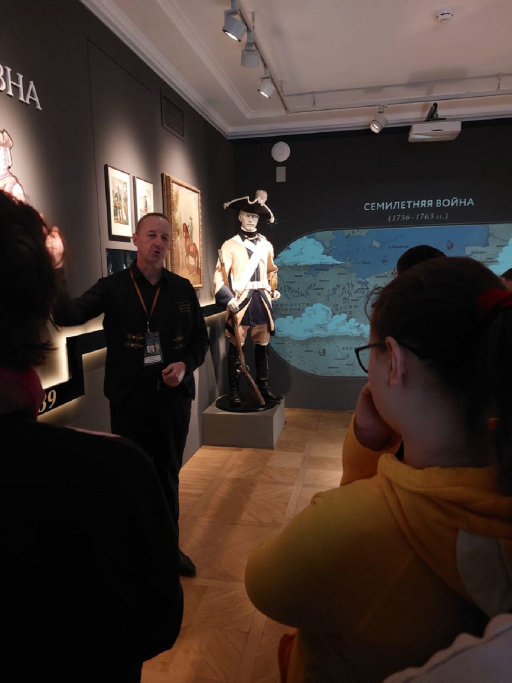 Замечательный экскурсовод Денис Викторович очень интересно рассказал о том, какое место занимал мундир в жизни служилого человека, как возникло само понятие — «честь мундира» и почему в среде профессиональных военных оно неотделимо от образа защитника Отечества.