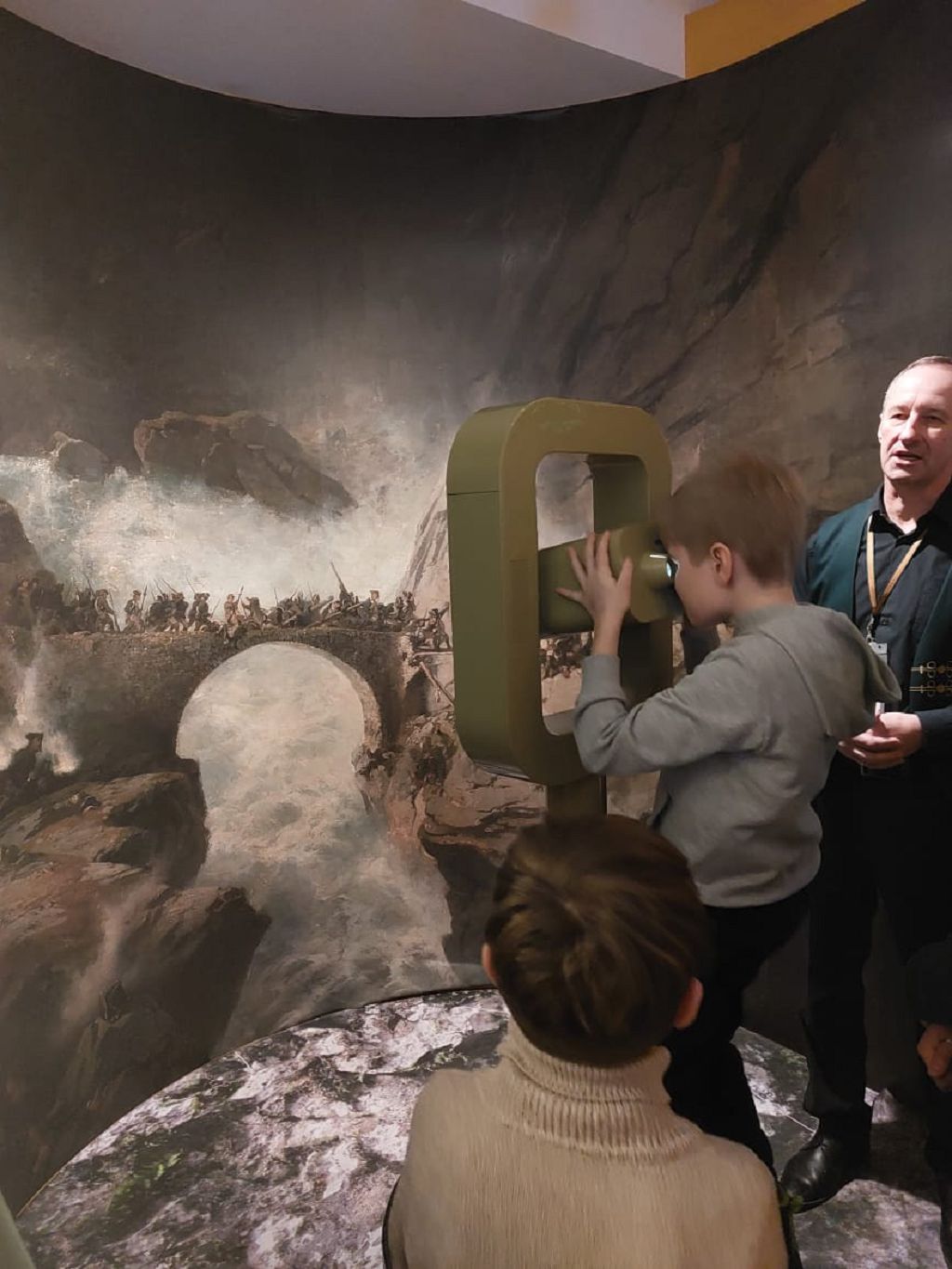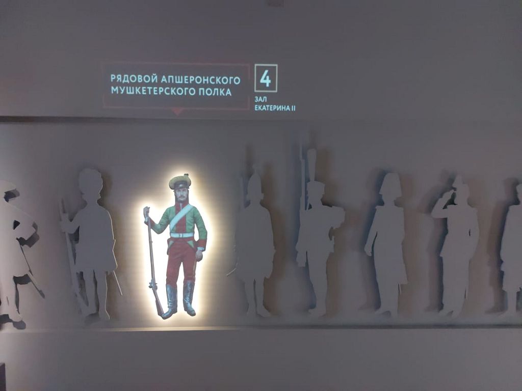 В каждом зале можно увидеть фото и видеоряд, который помогает воссоздать ту или иную эпоху, что производит необыкновенное действие на посетителей. Кажется, что те события, о которых рассказывает экскурсовод, происходят где-то совсем рядом. Картины истории как будто оживают и ты видишь то, что происходило много лет назад. Вот армия Суворова уничтожает турецкий гарнизон и берет неприступную крепость Измаил ( воссоздан макет штурма Измаила)… Воссоздана и история присоединения Крыма к России, которая также связана с именем нашего великого полководца Александра Суворова… А вот герои Бородинского сражения идут в атаку и невозможно остаться равнодушным в этом зале, где фоном слышна тревожная барабанная дробь , и ты понимаешь, как все было тяжело и страшно! Уж больно враг был силен и жесток…