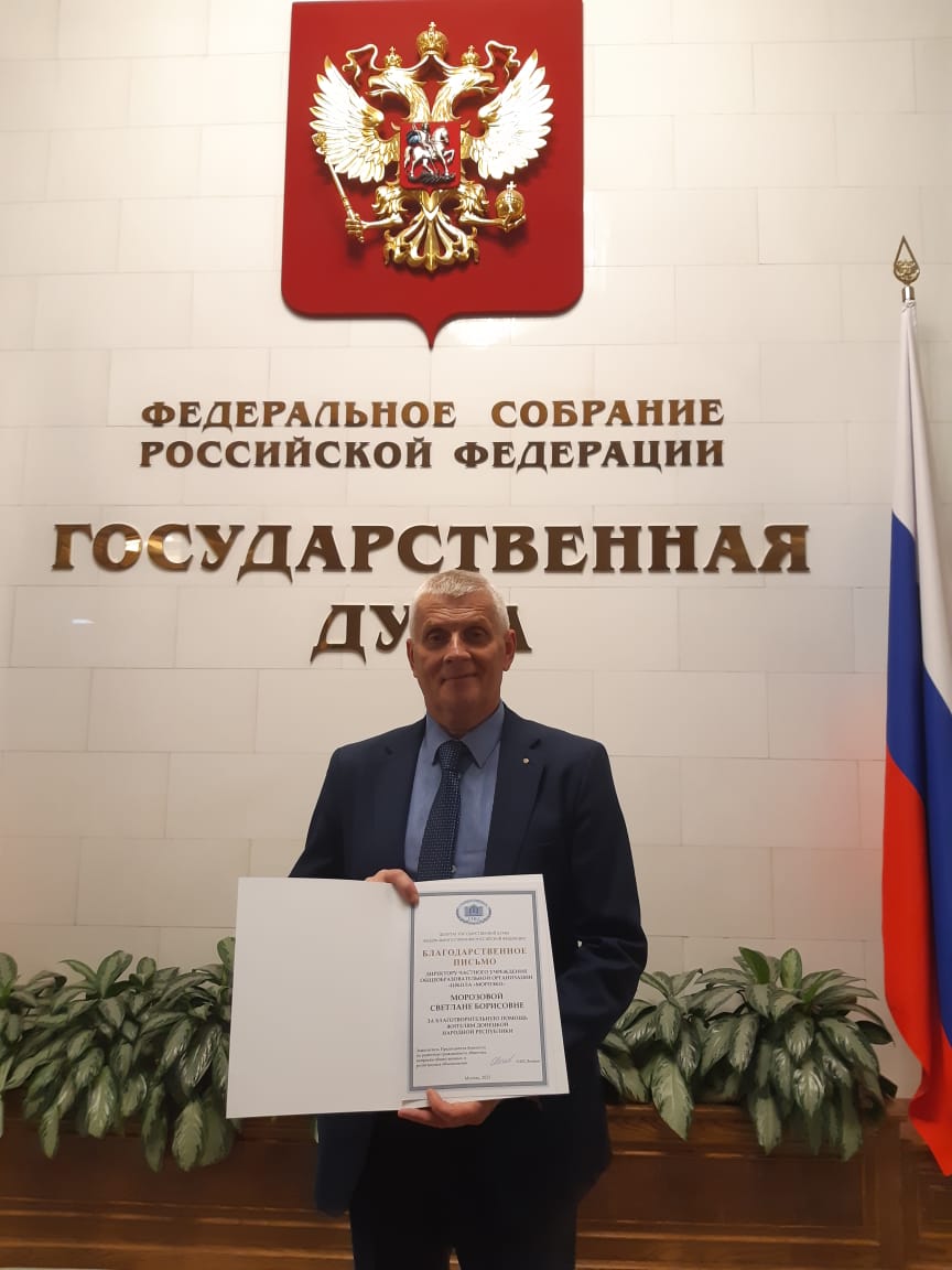 Вручал благодарственное письмо Депутат Государственной Думы, Заместитель Председателя Комитета