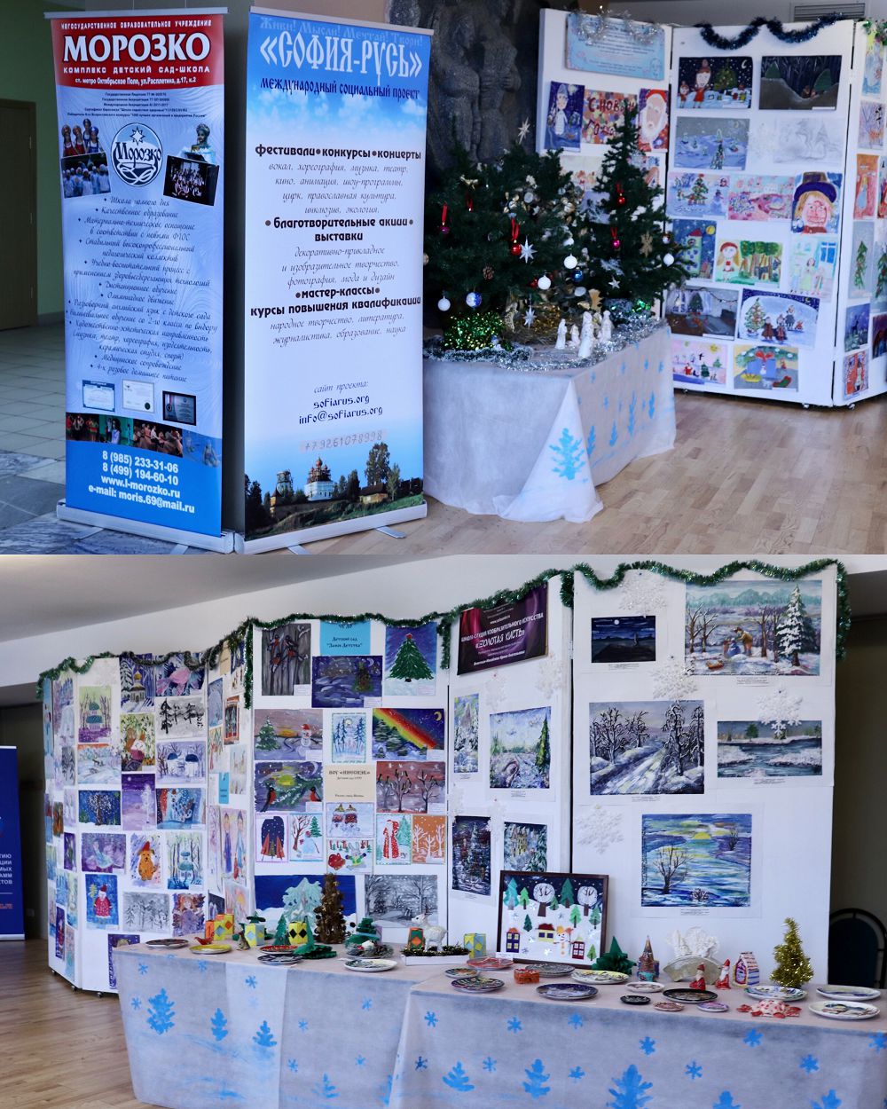 - выставку детского художественного творчества в рамках Дистанционного фестиваля-конкурса «София-Русь» 2019 г. в зале «Алмаз» на темы: «Рождественские сюжеты и зимние сказки», «Зимние пейзажи», «Новогодние игрушки и украшения, изготовленные руками детей»;