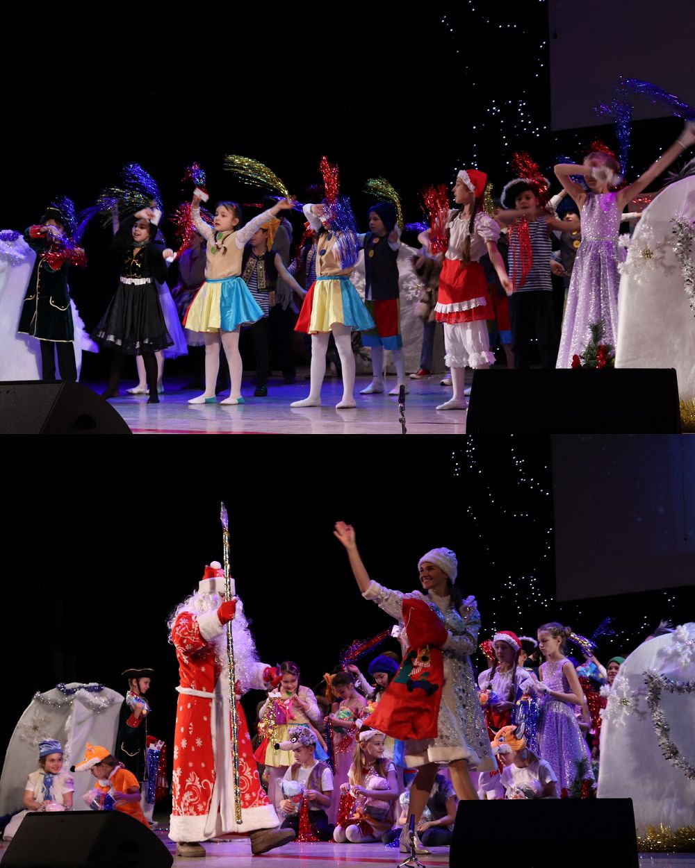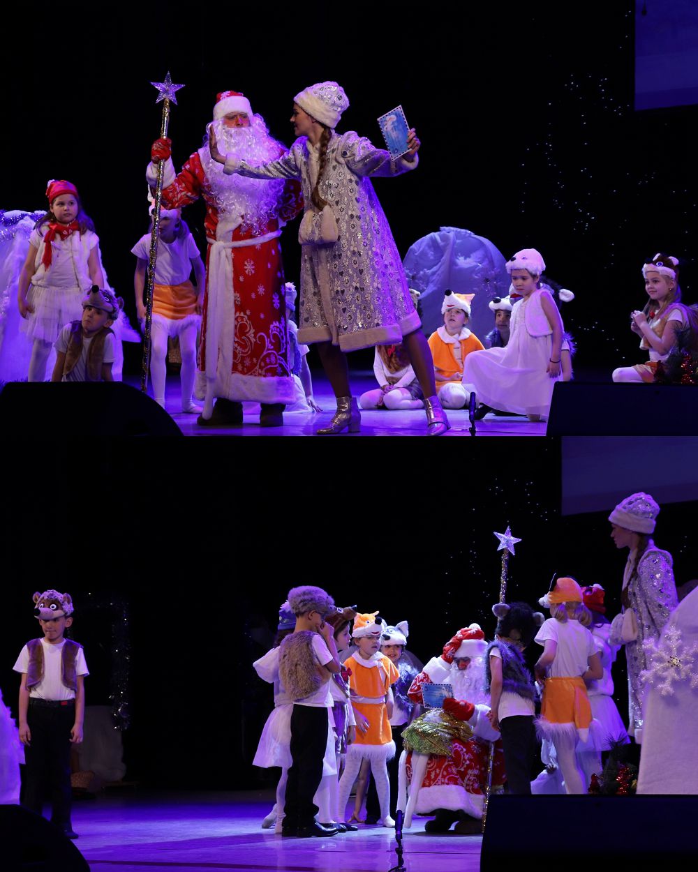 Пост-релиз. Смотреть.Праздничная программа была рассчитана на детей из многодетных семей, подопечных фондов СЗАО, САО г. Москвы, фонда «семейный очаг», МОМС «материнство и детство», инвалидов всероссийского общества слепых и других образовательных организаций , в том числе и на детей, попавших в трудную жизненную ситуацию. В общей сложности в празднике приняло участие около 450 зрителей и 150 юных артистов – учащихся Школы «Морозко».