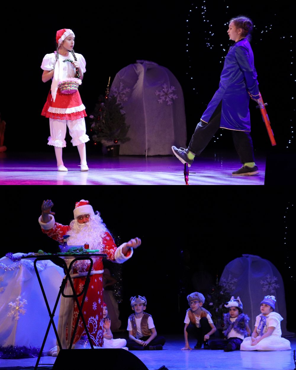 - музыкально-театрализованное представление «Переполох в Королевстве сказок» в зале «Восход» (участники и актеры новогоднего представления – учащиеся школы «Морозко»);