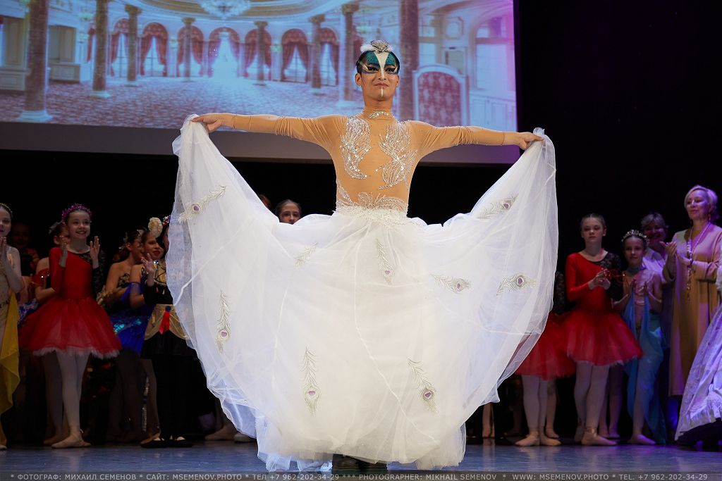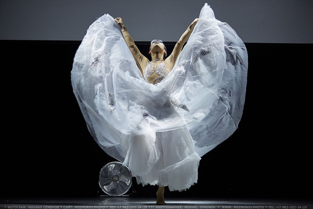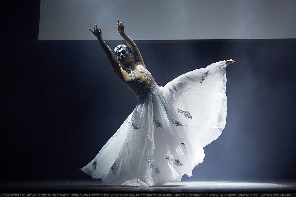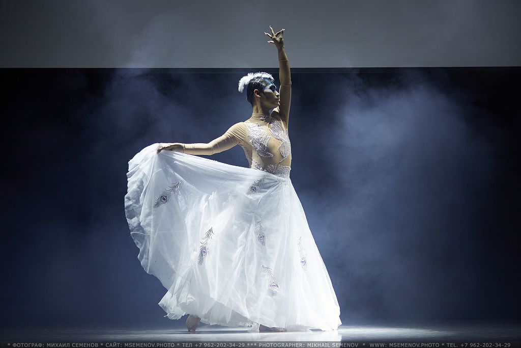 расшитая серебристой вышивкой, имитирующей изящные перья Павлина. Юбка артиста, исполняющего танец Павлина, состоит из большого количества слоев.