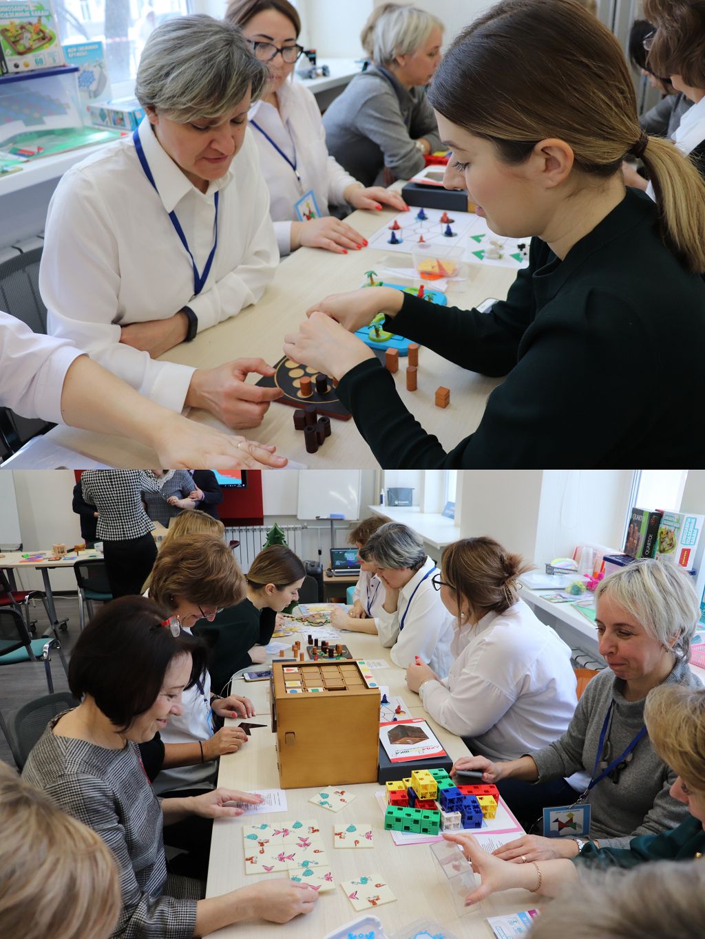Игротеку в 3-х зонах активности проводили:- Мусиенко Светлана Игоревна - руководитель инновационной федеральной площадки по направлению «Мир головоломок» Школы МОРОЗКО;