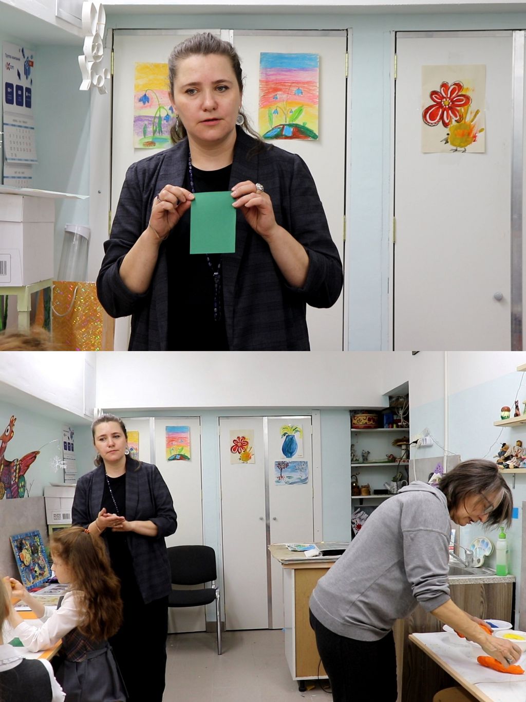 Мастер-класс провели учителя Школы "Морозко" педагог по технологии - Баклан Татьяна Евгеньевна, педагог по изобразительному искусству - Руднева Зоя Борисовна (член Союза Художников РФ, член Московского Союза Художников).