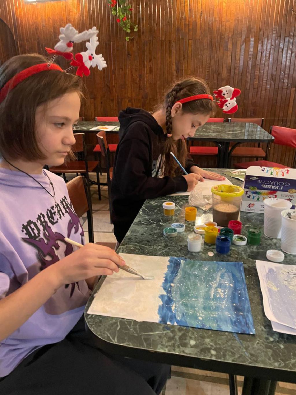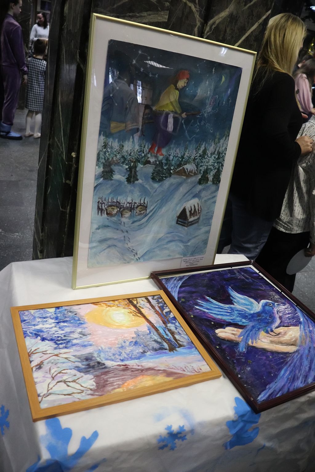 После открытия выставки прошли мастер - классы по ИЗО и ДПИ, на которых дети смогли своими руками изготовить оригинальные новогодние игрушки, поделки и открытки. Мастер - классы провели преподаватели Школы "МОРОЗКО": Баклан Т.Е. и Руднева З.Б. - член Союза Художников России, член Московского Союза Художников, преподаватель Художественно- промышленного Университета им. Строганова. Татьяна Евгеньевна и Зоя Борисовна познакомили ребят с интересными техниками бумажного моделирования, оригами, квиллинга.