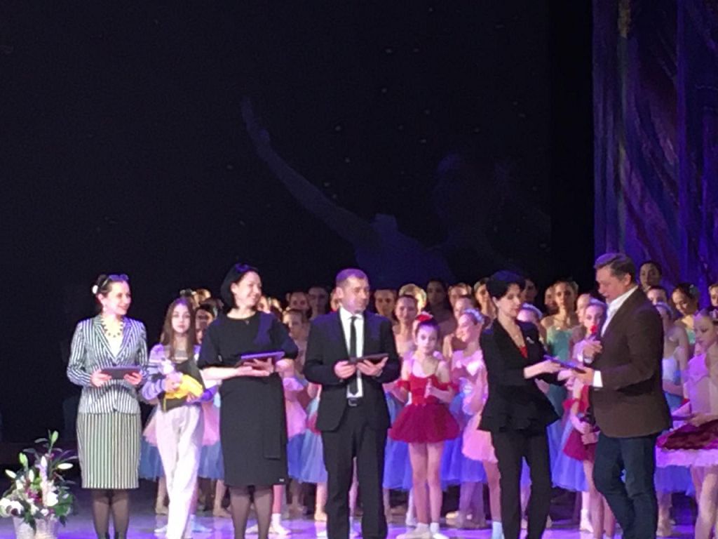 После незабываемого, великолепного концерта, в котором приняли участие не только нынешние воспитанники колледжа, но и выпускники, являющиеся сегодня солистами ведущих театров России — Большого Театра, Музыкального Театра им. К.С. Станиславского и В.И. Немировича-Данченко, лауреатами различных международных конкурсов и премий «Душа России», «Золотая маска», «Х-Dance» и т.д., была вручена Премия Г.В. Ледяха на льготное обучение, учрежденная для талантливых учеников. Премию вручил директор Школы Л.А. Ледях.